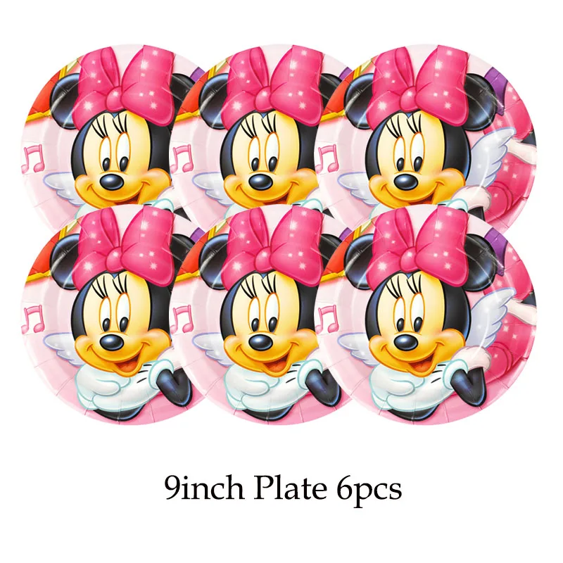 Мультфильм Дисней тема Минни Мауса украшение для дня рождения девочки одноразовая посуда бумажные тарелки чашка флаг детский душ принадлежности