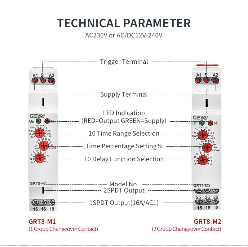 Советы: эта страница предназначена для многофункционального реле времени GRT8-M,Если вам нужно только одно функциональное реле времени GRT8-A/B, Задержка включения или задержка выключения функции, пожалуйста, нажмите здесь!