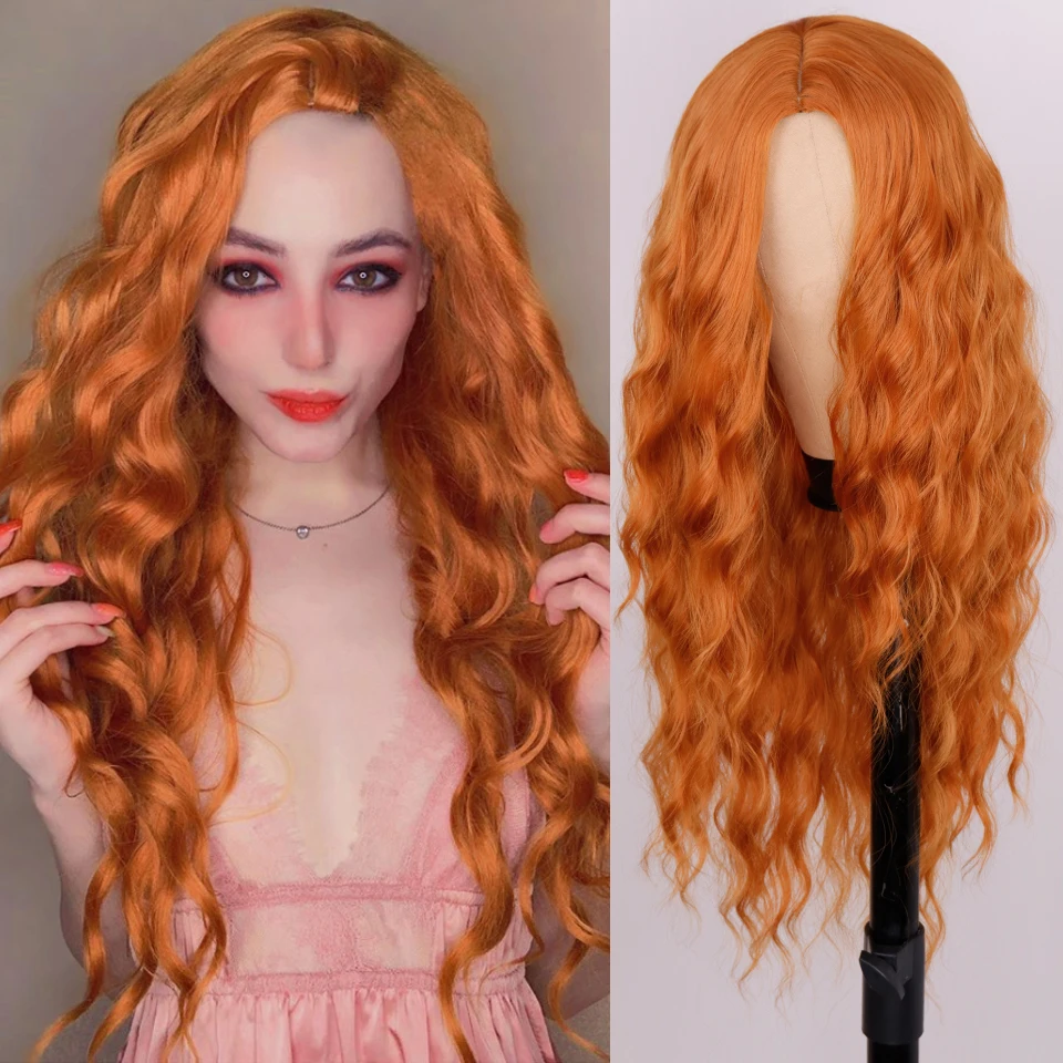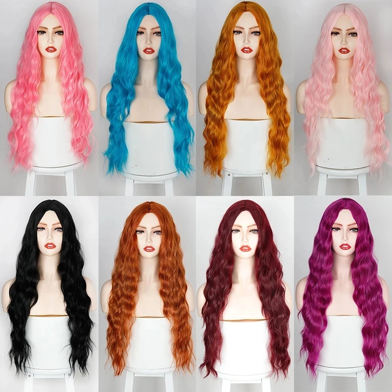 Синтетический парик холодной завивки, длинные натуральные волны, Омбре, оранжево-коричневые, разные цвета, парики для вечеринок, косплея, Хэллоуина для белыхчерных женщин