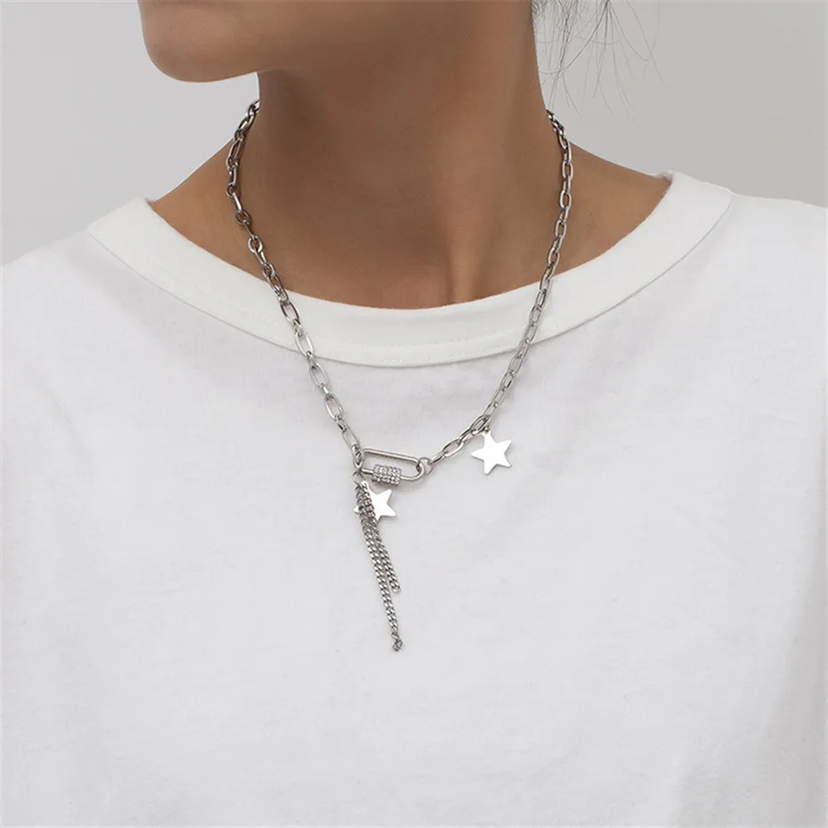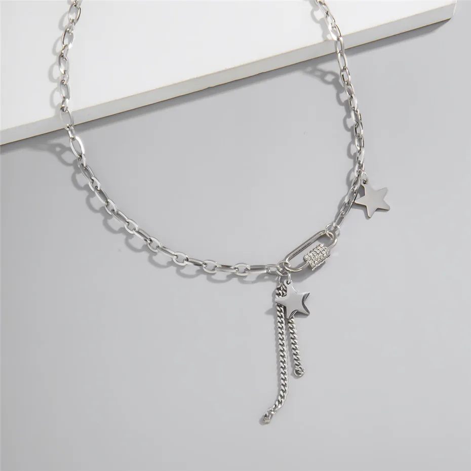 Цепочка SHIXIN из нержавеющей стали со звездами, ЖенскаяМужская мода, ожерелья 2020, корейские ювелирные изделия