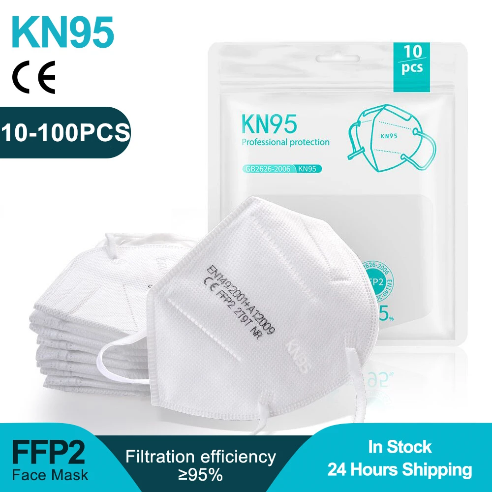 100 шт. FFP2 маски KN95 маски для лица адаптируемые против загрязне...