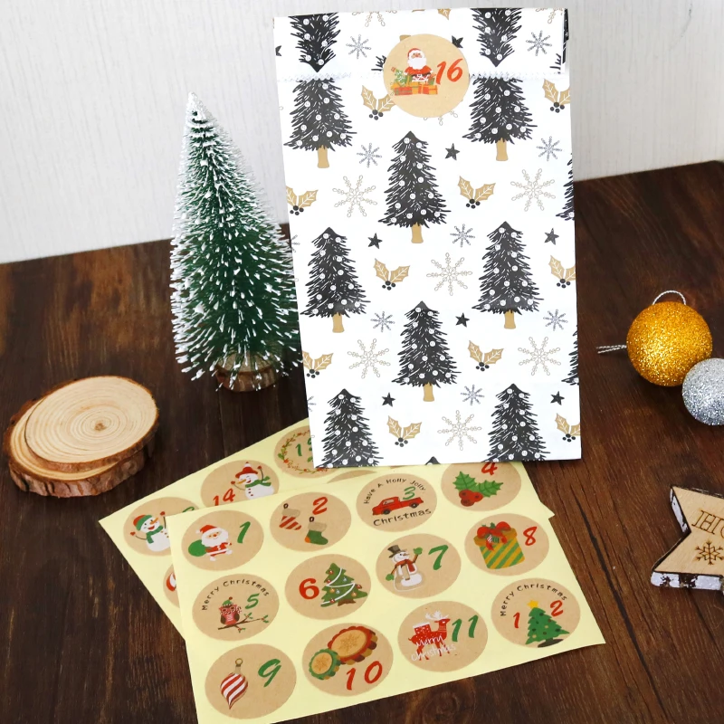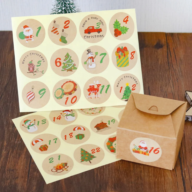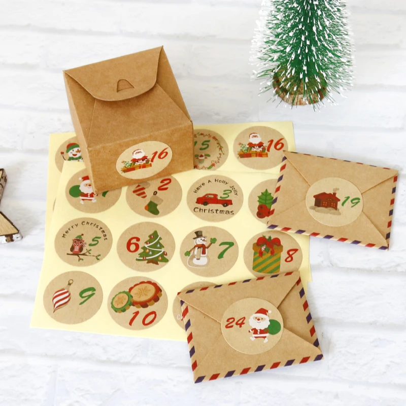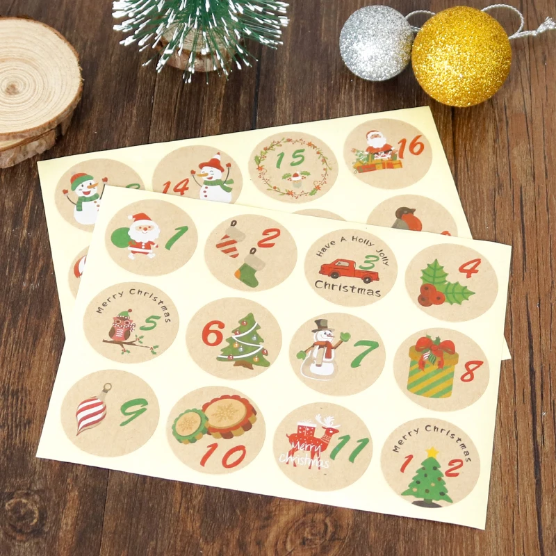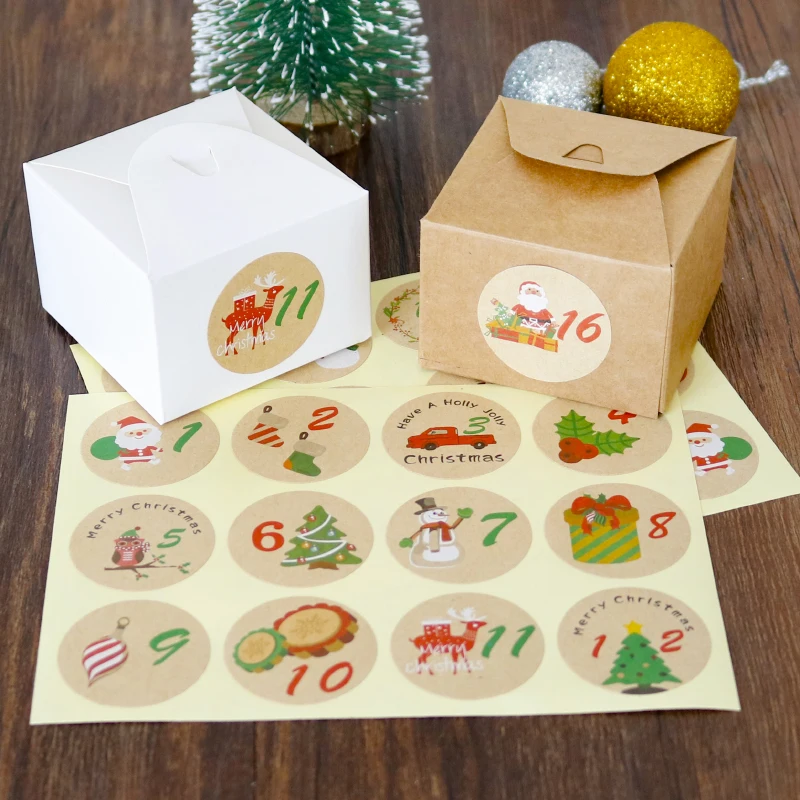 96 шт., рождественские подарочные наклейки, бумажные наклейки с номером календаря, рождественские вечерние наклейки для украшения, упаковочные этикетки из крафтовой бумаги