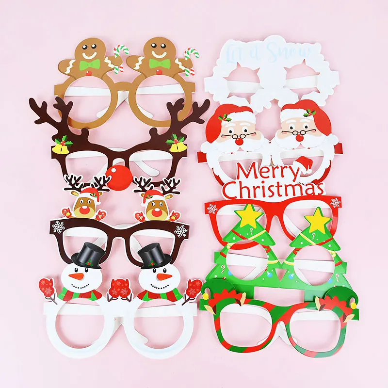 9 шт.лот Рождественское украшение мультяшная оправа для очков Санта-Клаус Снеговик Бумажные очки реквизит для фотографий Новогодний подарок для детей сувениры вечерние ринки