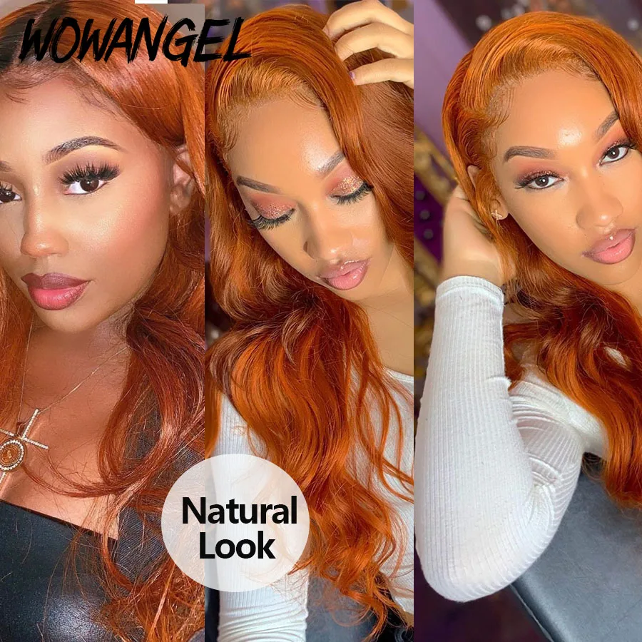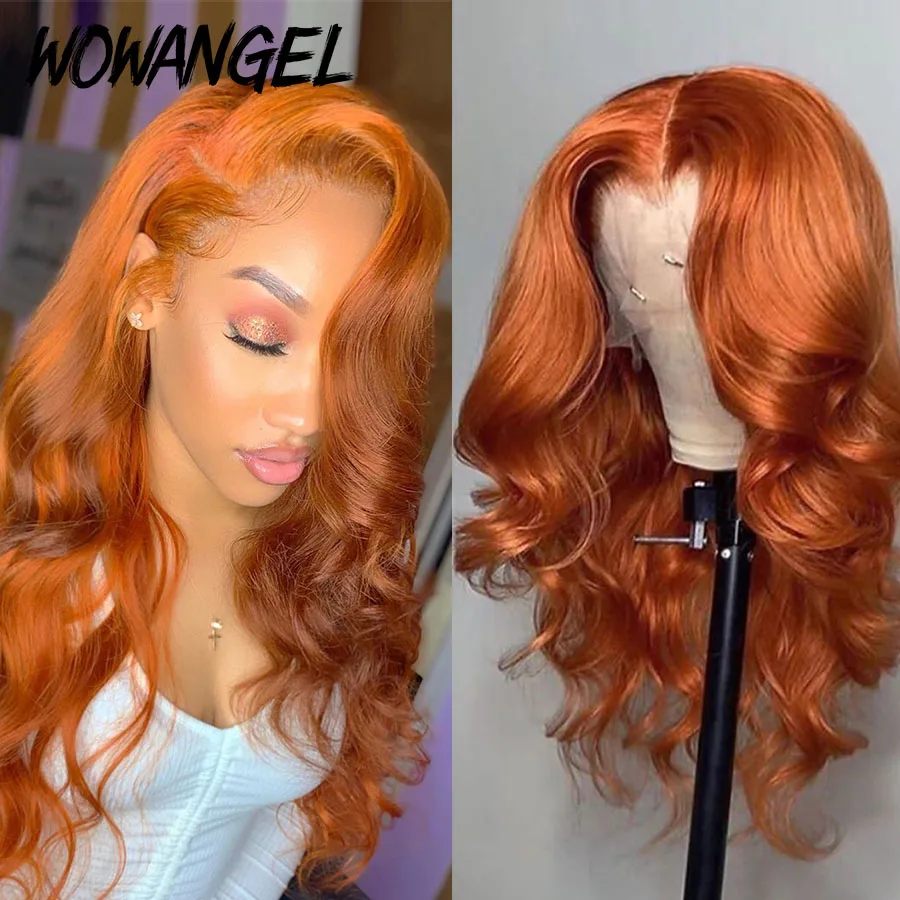 Имбирь оранжево-13x4 прозрачный кружевной передний парик предварительно вырезанные бразильские волнистые волосы волнистые человеческие волосы парики без клея парики шнурка для женщин