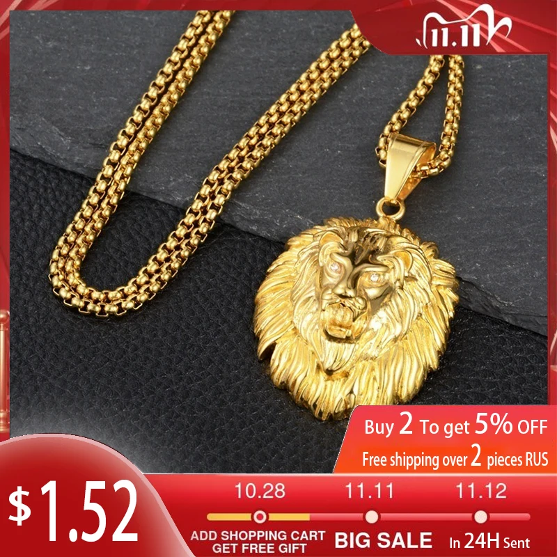Цепочка с подвеской в виде головы льва для мужчин, стильное ожерель...