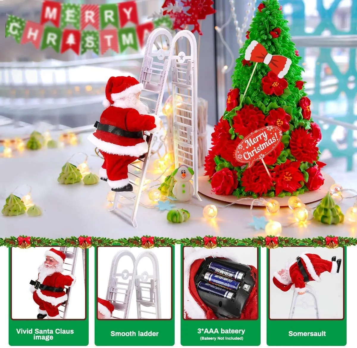 Рождественское украшение, музыкальный Санта-Клаус, электрическая лестница, подвесное украшение на елку, для детей, новогодняя игрушка