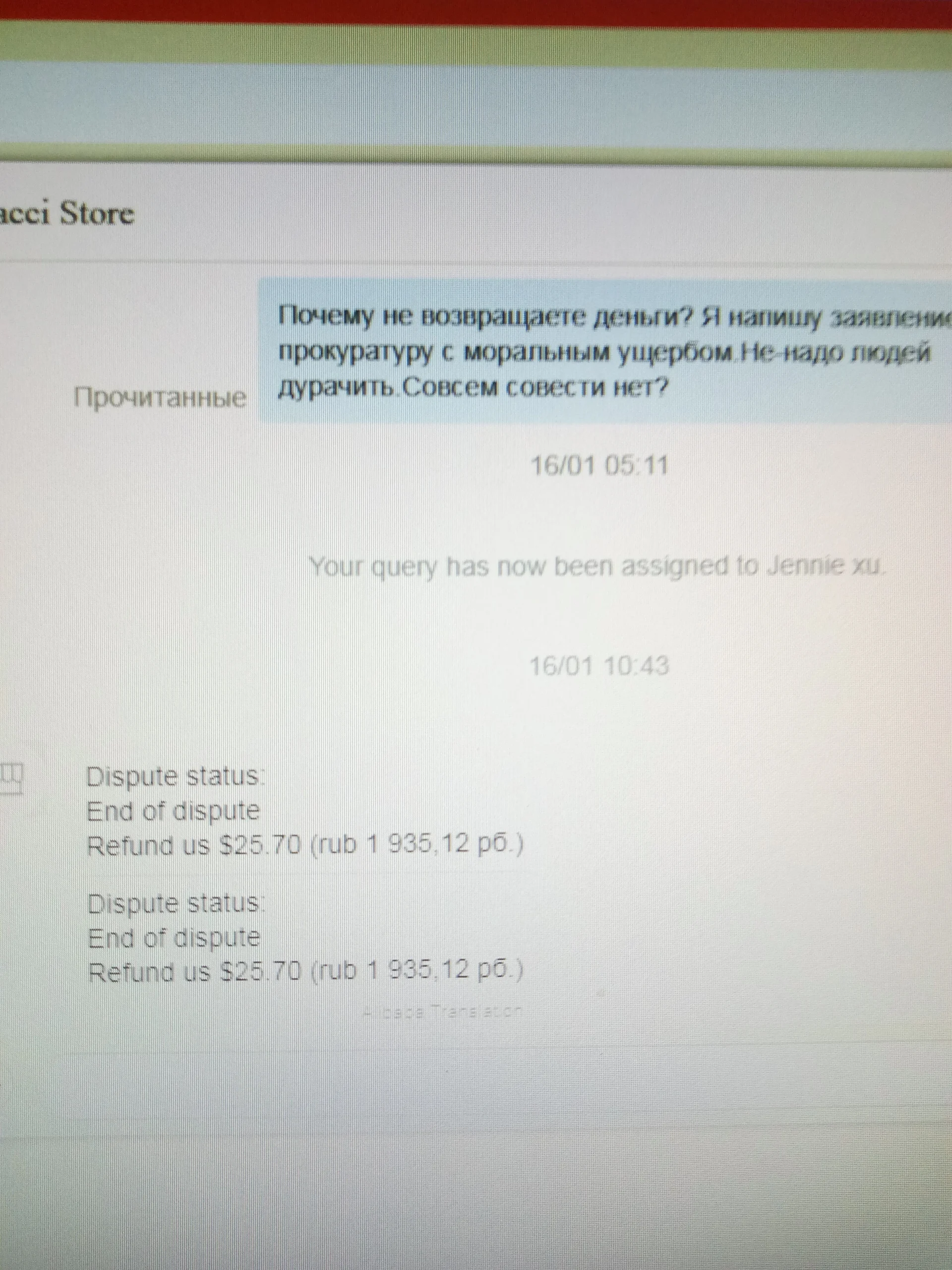 Продавец обманщик,заказал товар 08 декабря 2020,срочно был нужен для работ на предприятии,продавец обещал быструю доставку в течении 10 дней. 10 января на странице мои заказы отмечено что товар выдан клиенту,при этом ни каких квитанций ,ни каких звонков от курьера не поступало - это обман. После открытия сора продавец отписался в сообщении что сделал возврат денежных средств (см. фото), но прошло уже семь дней -деньги на карту так и не поступили,опять обманывает как с доставкой так и возвратом. Я несколько лет покупаю товары и всегда если товар не могли доставить после открытия спора деньги возвращали в течении суток. Делайте вывод друзья.