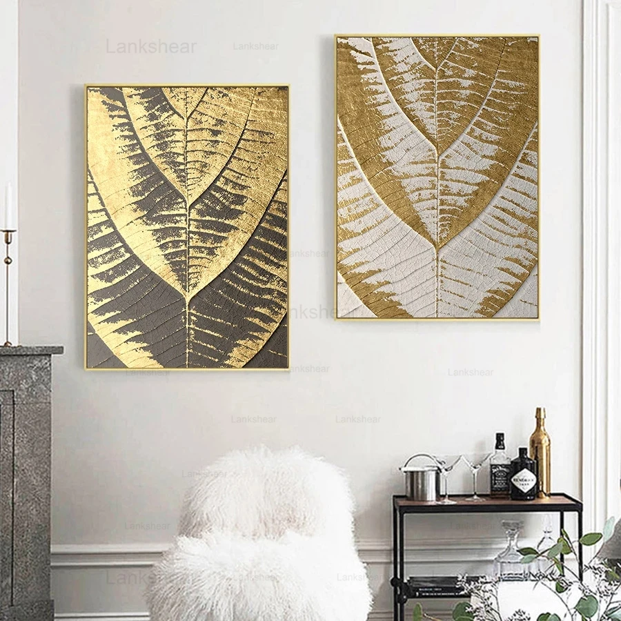 Винтажные плакаты, холст с изображением золотых листьев, абстрактные настенные картины, скандинавские растения, масло, большая картина для гостиной, кухни, Декор icon star icon star icon star icon star icon star