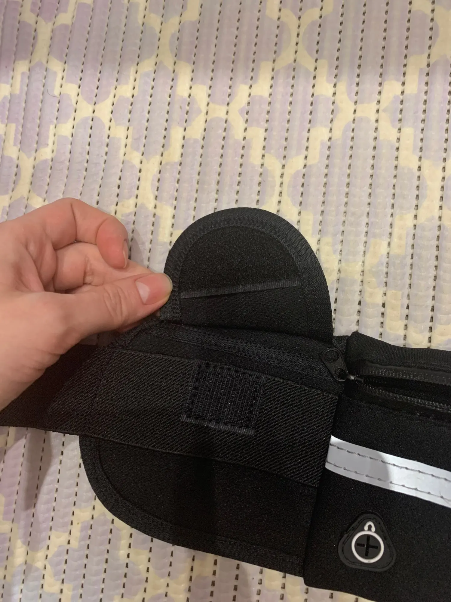 Очень милая плоская сумочка для пояса. Незаменима для бега. Есть отделение для телефона, ключей и бутылочки. Ремень эластичный. Удобная. Сшита аккуратно.
