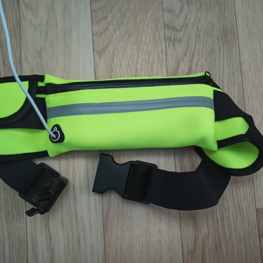 Стоит своих денег. Качество, на первый взгляд, хорошее. Пояс - широкая резинка. Сама сумка на тонкий неопрен похожа. Швы ровные, цвет как на картинке, ленточка светоотражателя работает. :) Кармашек для телефона нормального размера, но дырочка для наушников еле намечена. Если пользоваться, надо прорезать. А вот кармашек для ключей маловат. И держатель бутылки тоже - разве что под 0.2 л.
