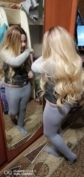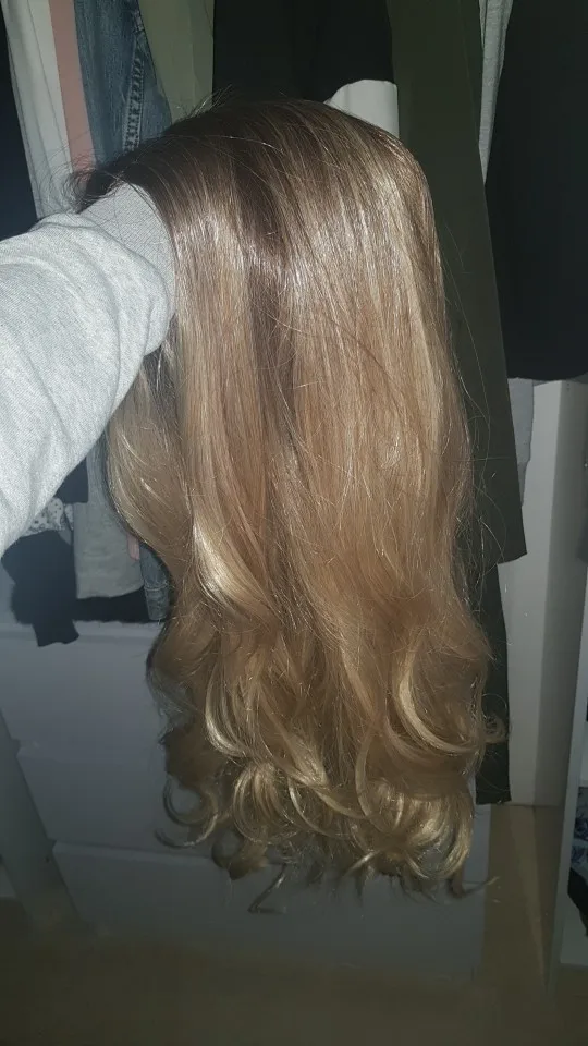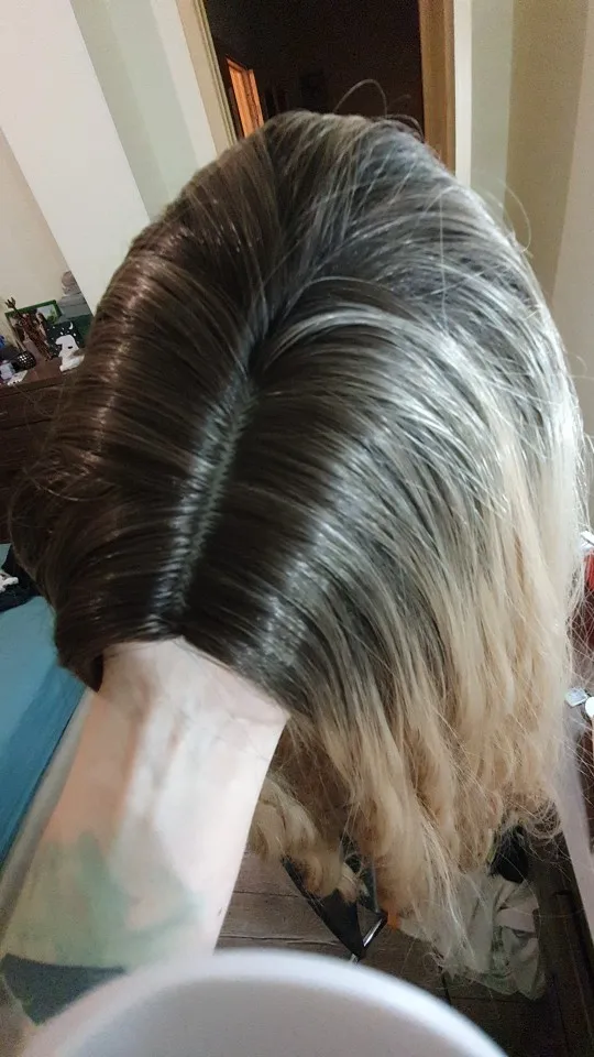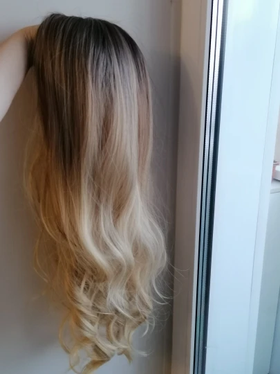 Парик выглядит великолепно, немного запутывается, но ничего, что не может быть решено. Мне нравится цвет корней, он выглядит как настоящий. Я буду продолжать покупать!