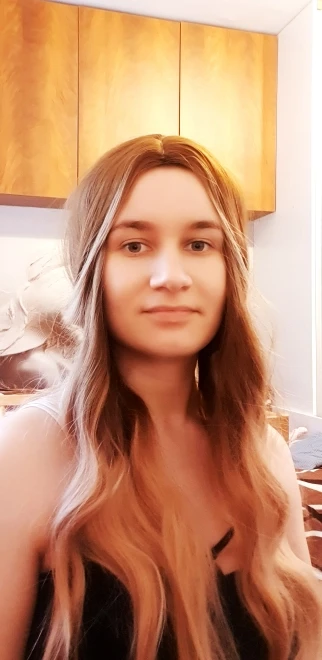 Таким образом, парик темно-блонд, в нем нет розового/оранжевого оттенка, но он выглядит хорошо! На втором фото выглядит как Мура, но я совсем не разочарован, выглядит так естественно и так хорошо, мне это нравится! И цена была очень дешевой за качество...