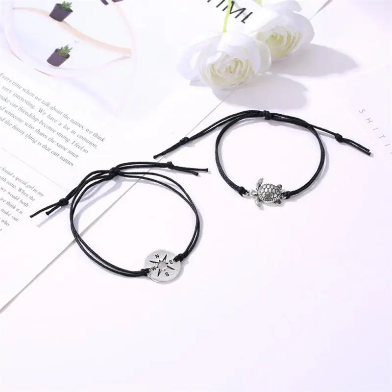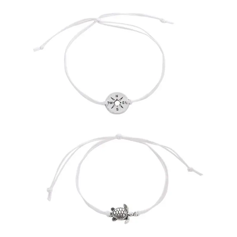 Браслет на ногу с компасом и черепахой для мужчин и женщин, Простой браслет из веревочной ленты в стиле ретро, креативный дизайн из двух частей, милый простой дизайн с черепахой, хороший подарок для мужчин и женщин, 2 шт.