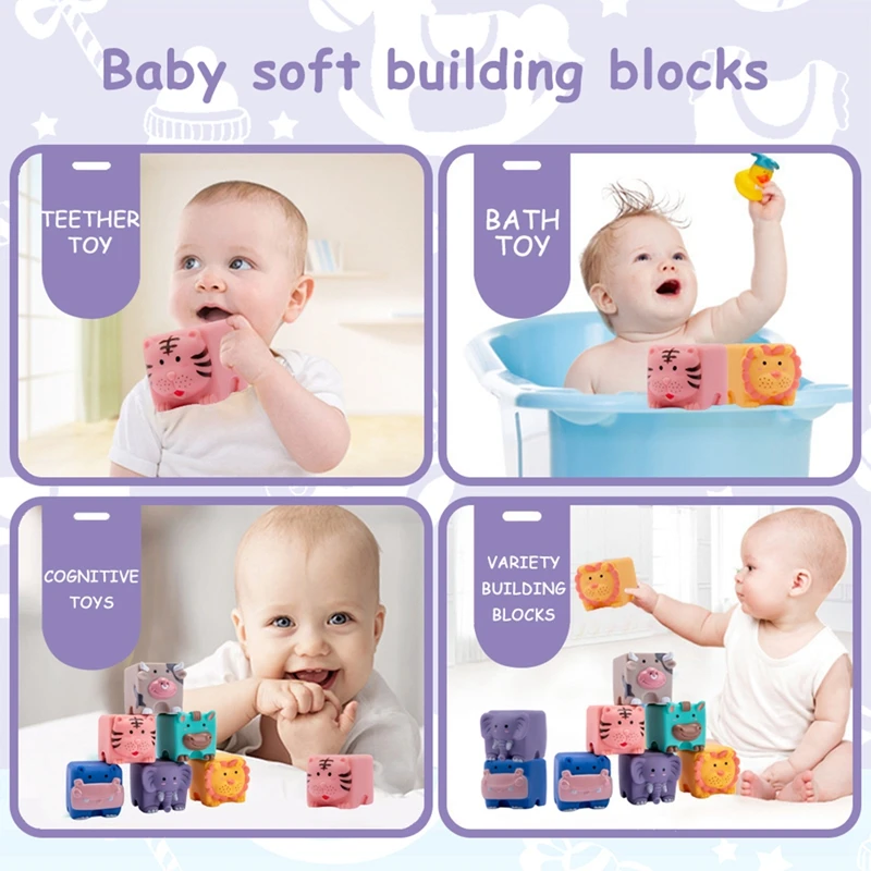 Детская игрушка, мягкие строительные блоки, Детские массажные с резиновым покрытием прорезыватели, игрушки для ванной для детей, сжимаемая сенсорная игрушка Монтессори, 3D сенсорный ручной мячик