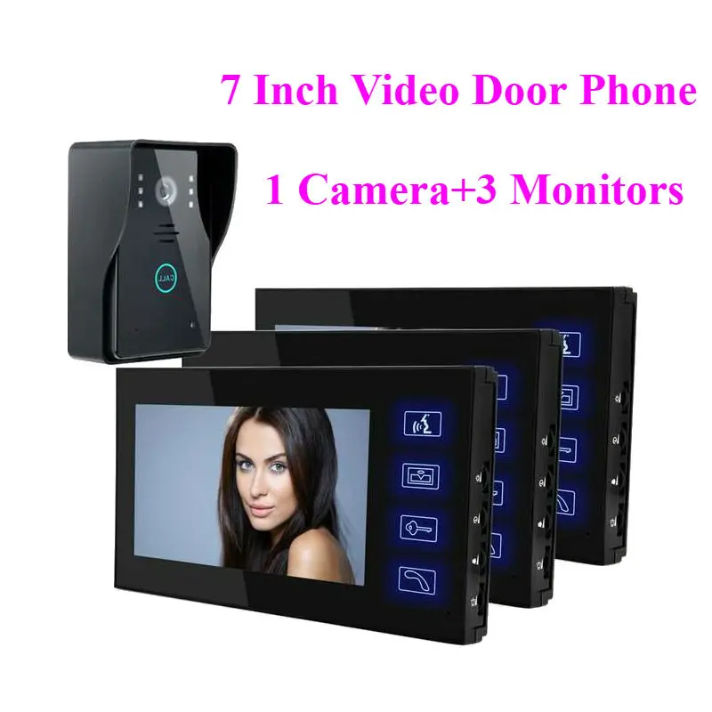 SmartYIBA 7 "Домашний телефон двери видео домофон сенсорный Дисплей домофона аудио домофон 3 Монитора комплекты + CMOS IR Камера дверной звонок наборы