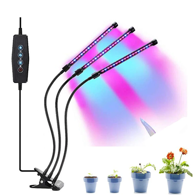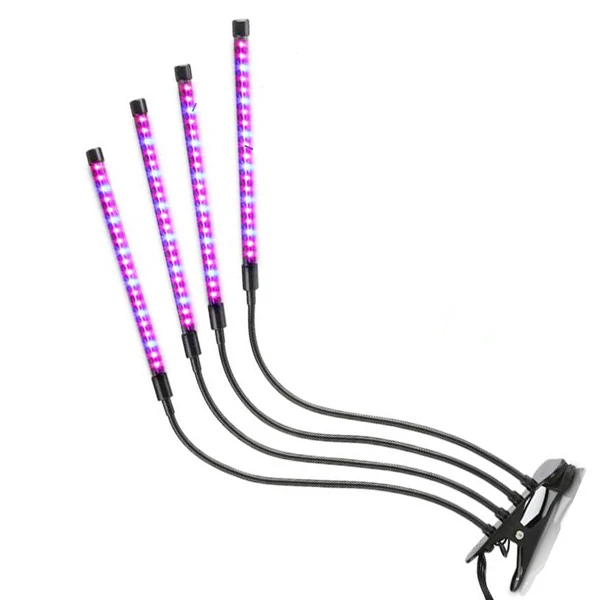 Светодиодная лампа для выращивания растений с 4 головками, полный спектр света для растений с usb-зажимом, освещение для роста растений в помещении