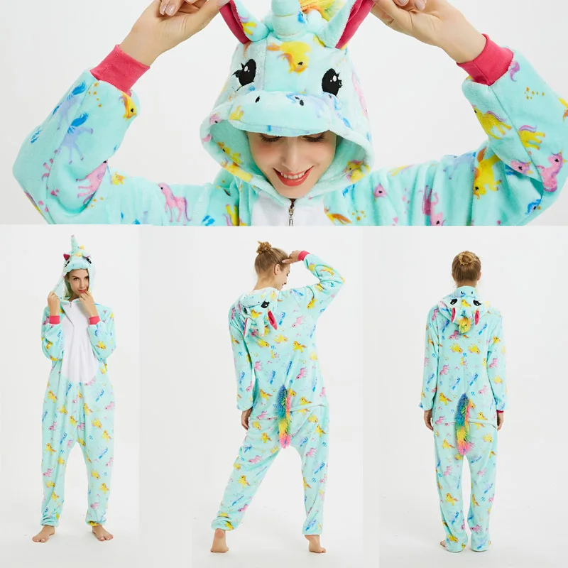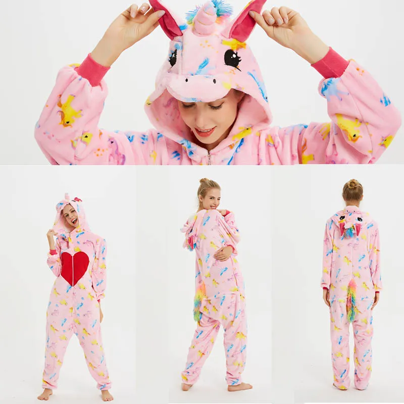 Милая мультяшная пижама для женщин комбинезон оптовая продажа зимние кигуруми единорог одежда для сна с капюшоном рождественские костюмы женская домашняя одежда