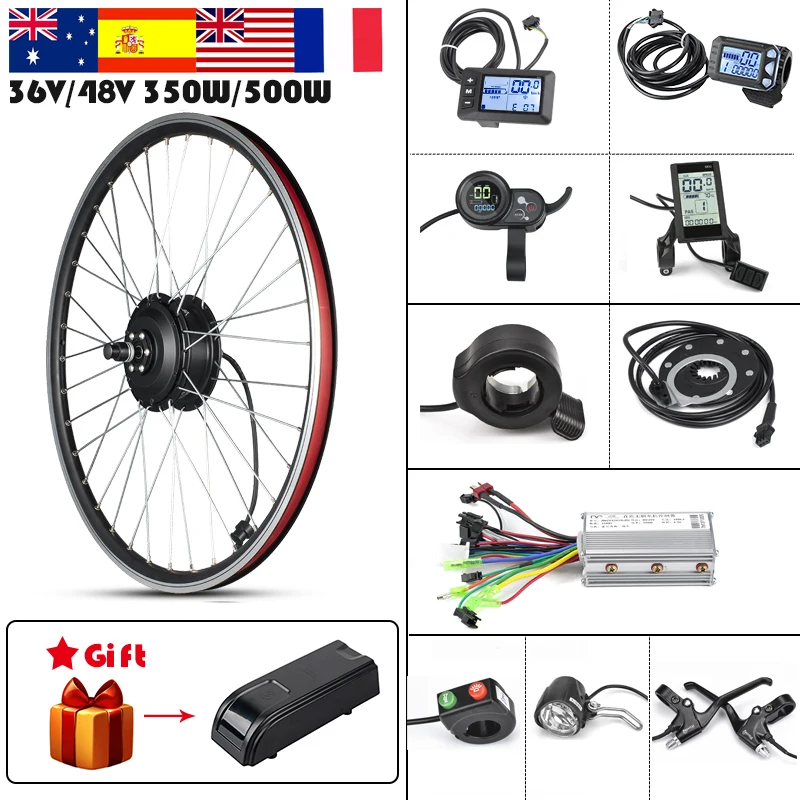 Комплект для переоборудования E-BIKE, колеса 26 дюймов, мотор-колесо для электрического велосипеда, 36 в-48 в 250 Вт 500 Вт, переднее заднее моторизированные колеса