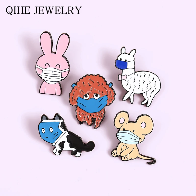 Броши с эмалью в виде маски, кролика, мыши, собаки, кошки, альпаки