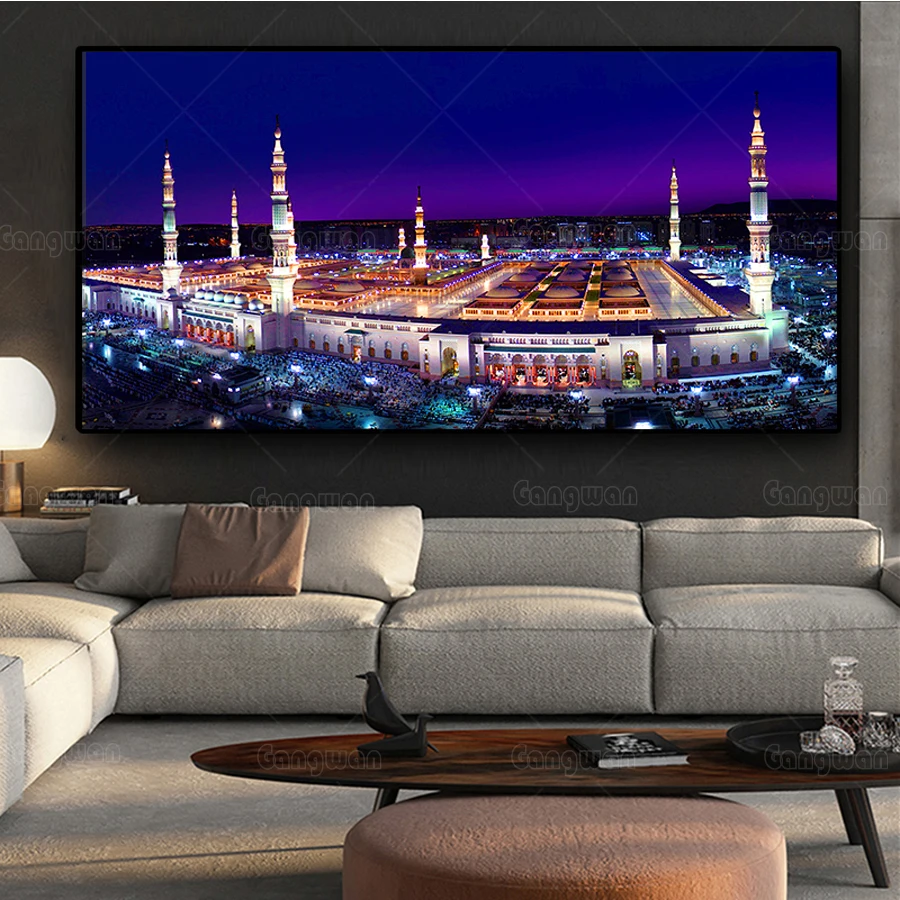 Ислам строительство Ночной пейзаж алмазная живопись Мекка ислам ic мусульманская мечеть 100% полностью квадратная круглая дрель Настенная картина для гостиной