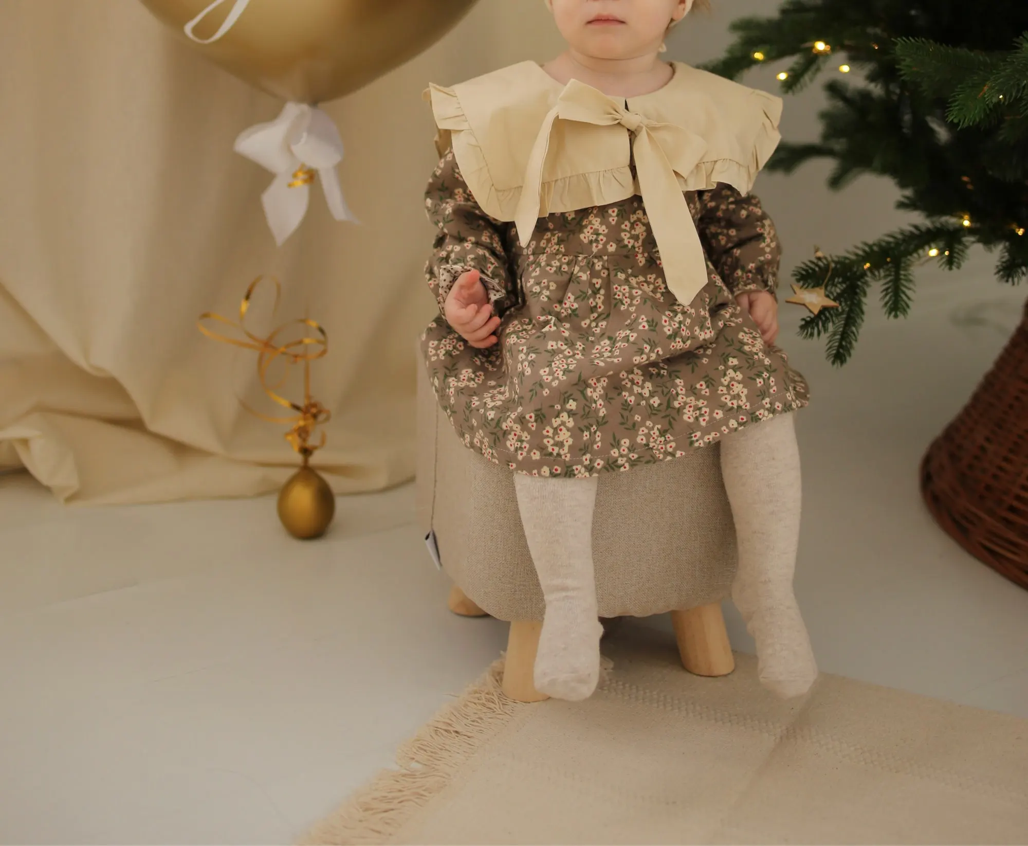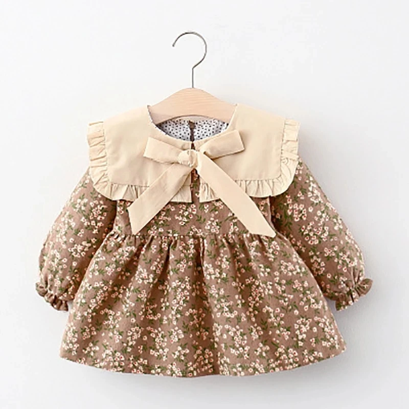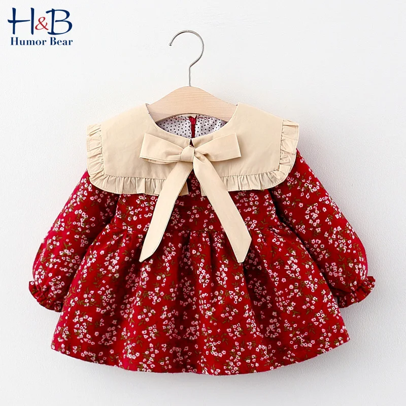 Платье для маленьких девочек Humor Bear, Осень-зима 2022, платье принцессы с длинным рукавом и цветочным рисунком, воротником-стойкой, оборками и бантом
