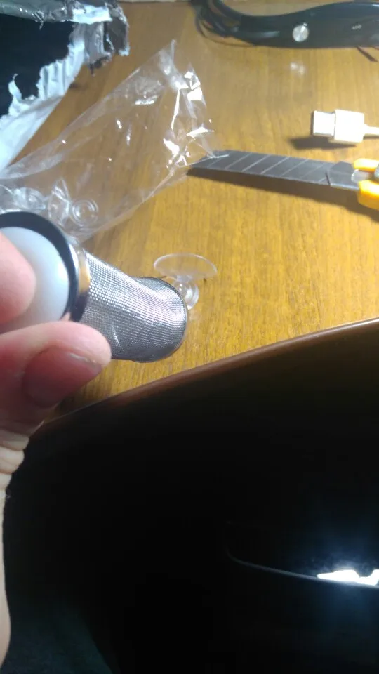 Очень хорошая всасывающая фильтр всасывания моего внешнего насоса Eheim, который, таким образом, предотвращает всасывание темных кругов и креветков
