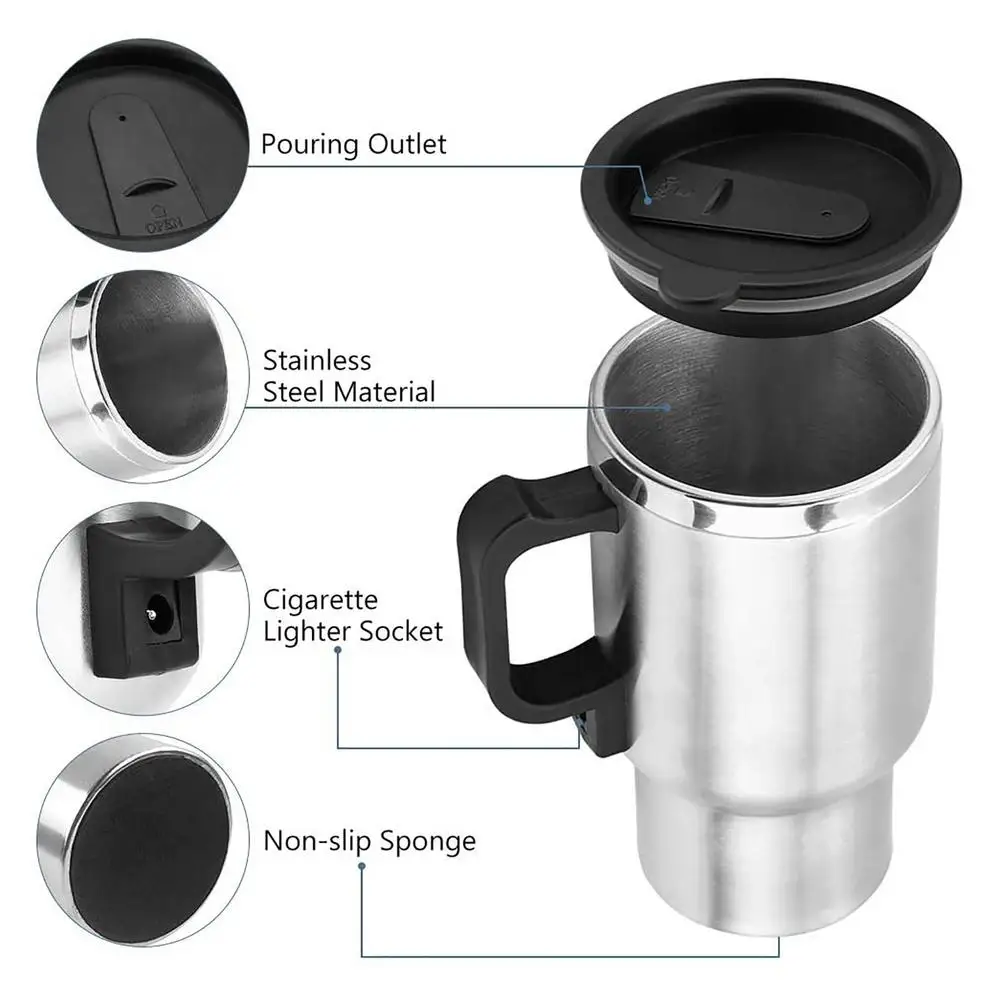 Автомобильный электрический термос с подогревом, 500 мл, из нержавеющей стали, с прикуривателем