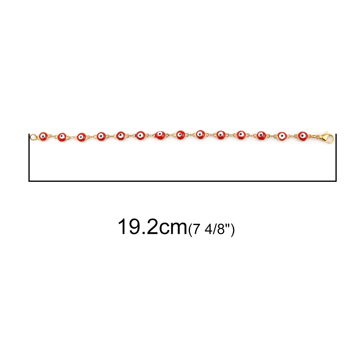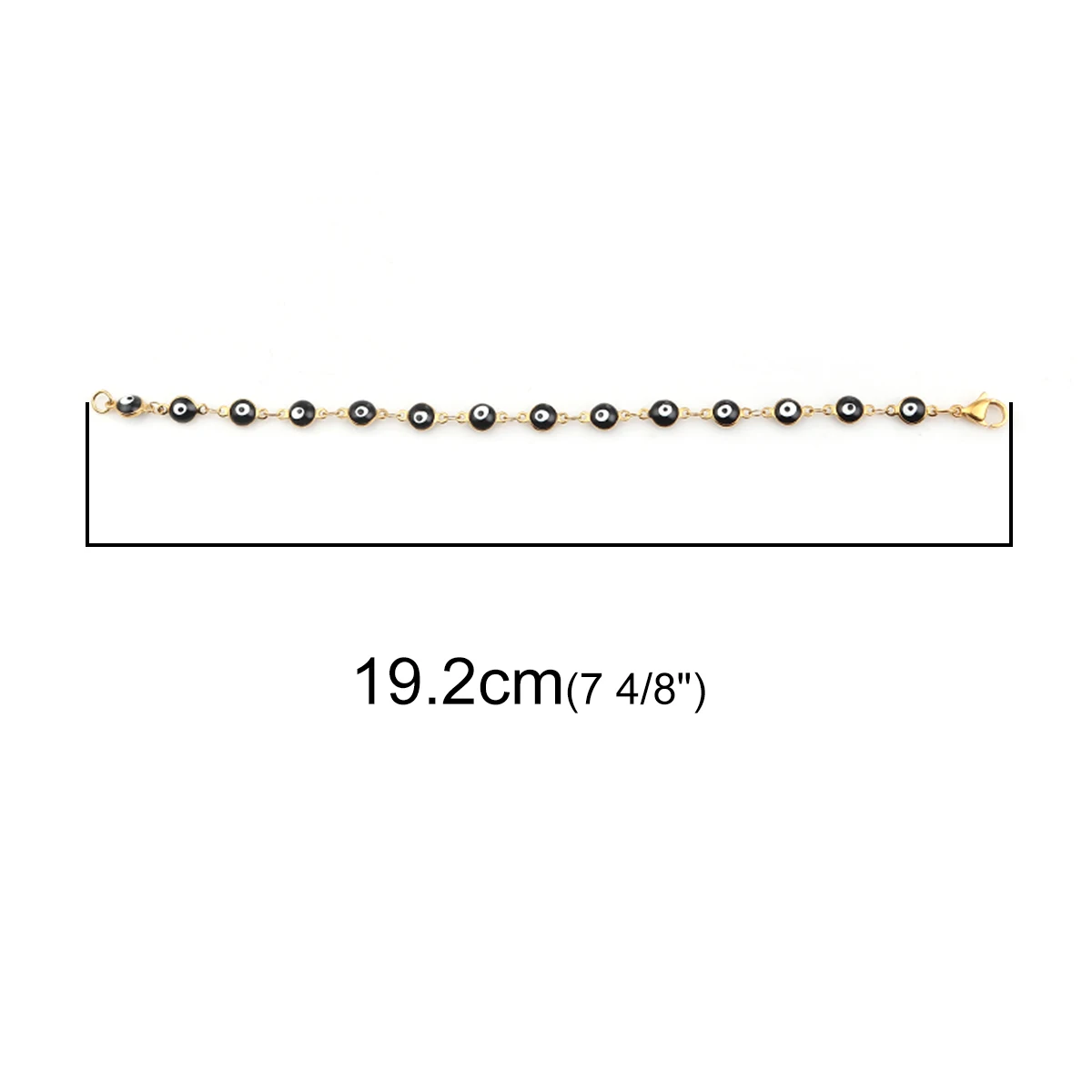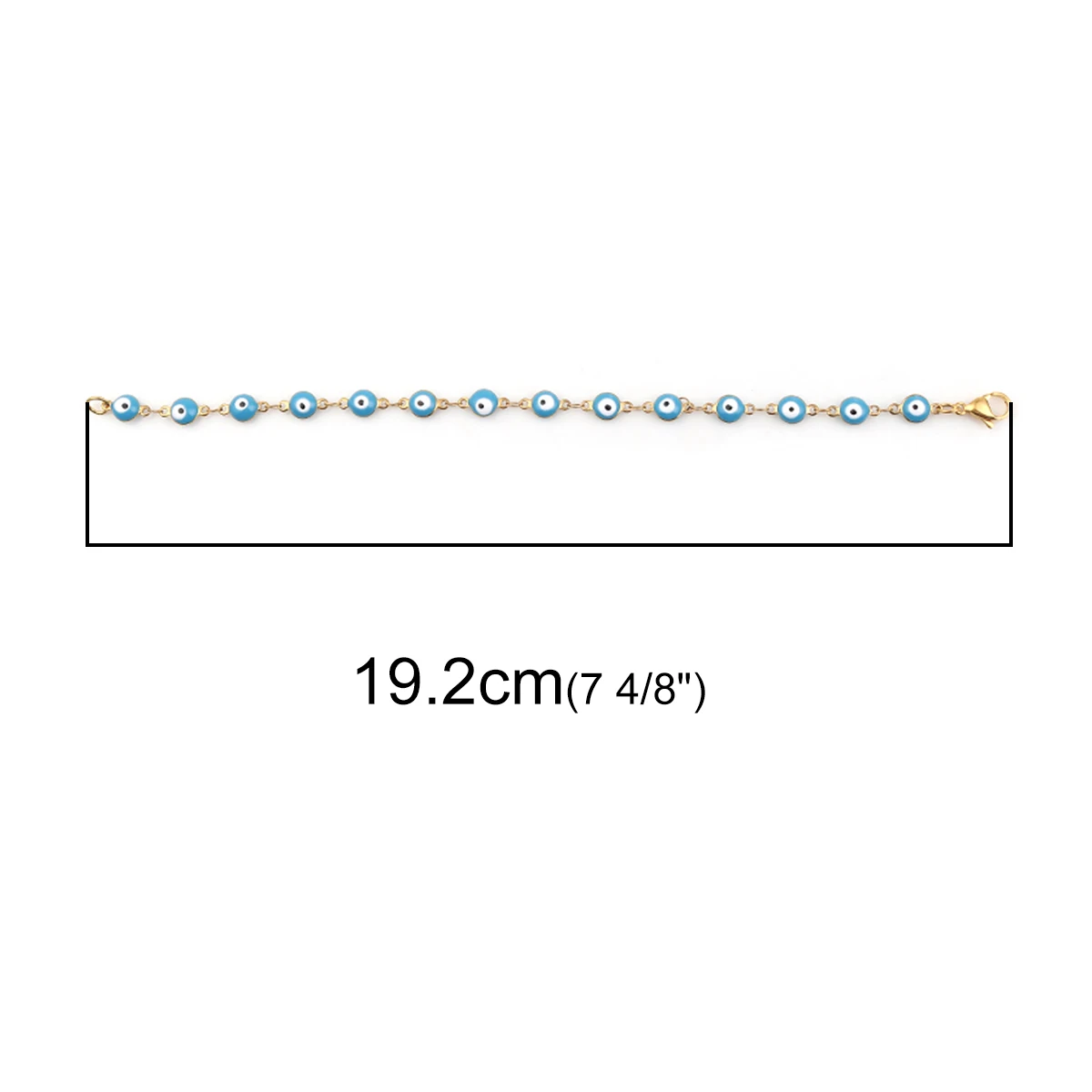 Браслеты из нержавеющей стали 304 для женщин и мужчин, Ювелирное Украшение золотого цвета, звеньевая цепь с эмалью яркого сглаза, длина 19,2 см, 1 шт.