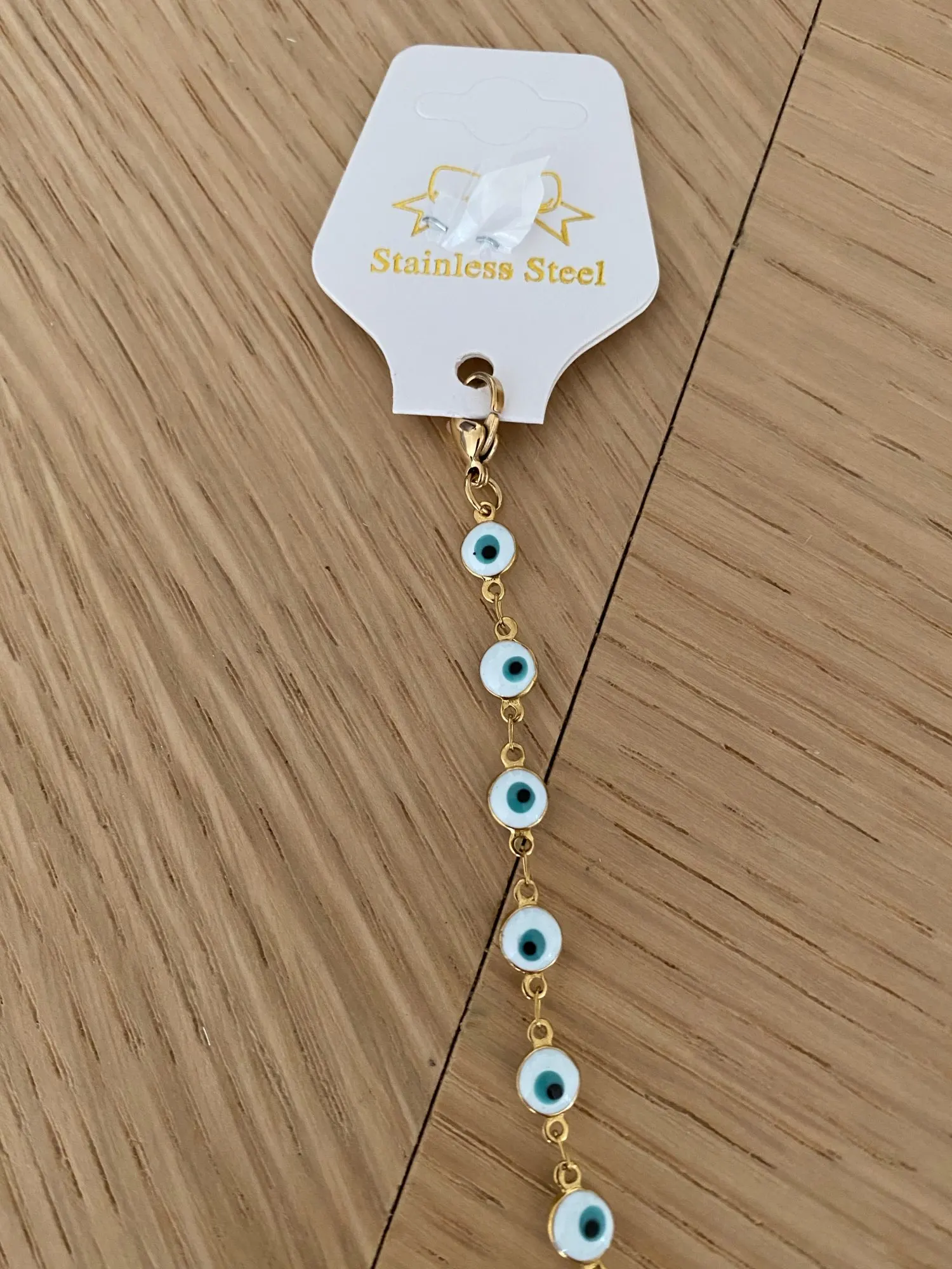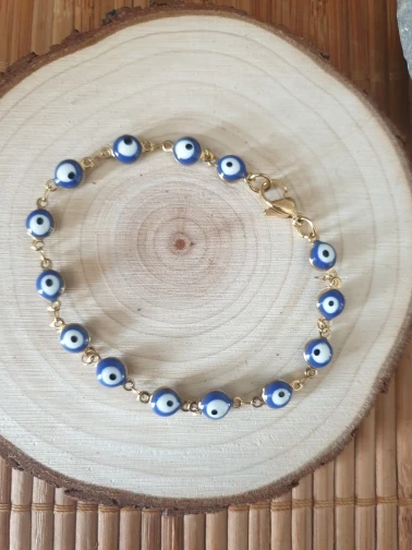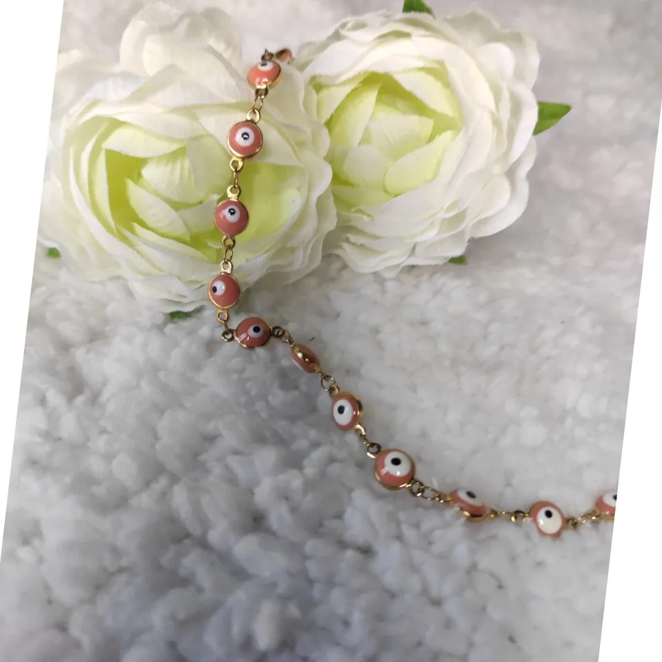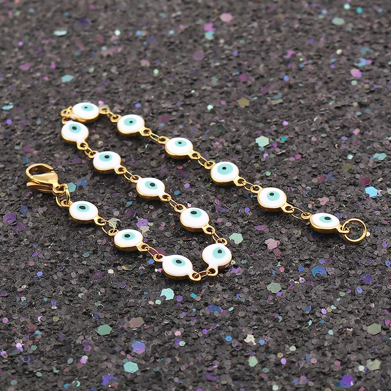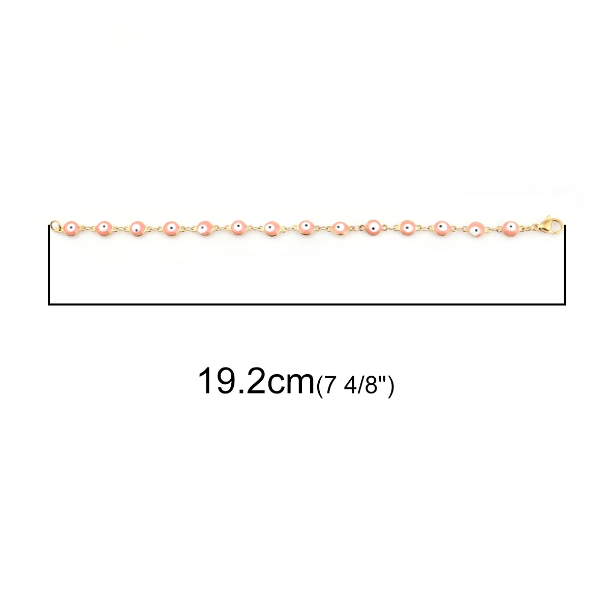 Браслеты из нержавеющей стали 304 для женщин и мужчин, Ювелирное Украшение золотого цвета, звеньевая цепь с эмалью яркого сглаза, длина 19,2 см, 1 шт.