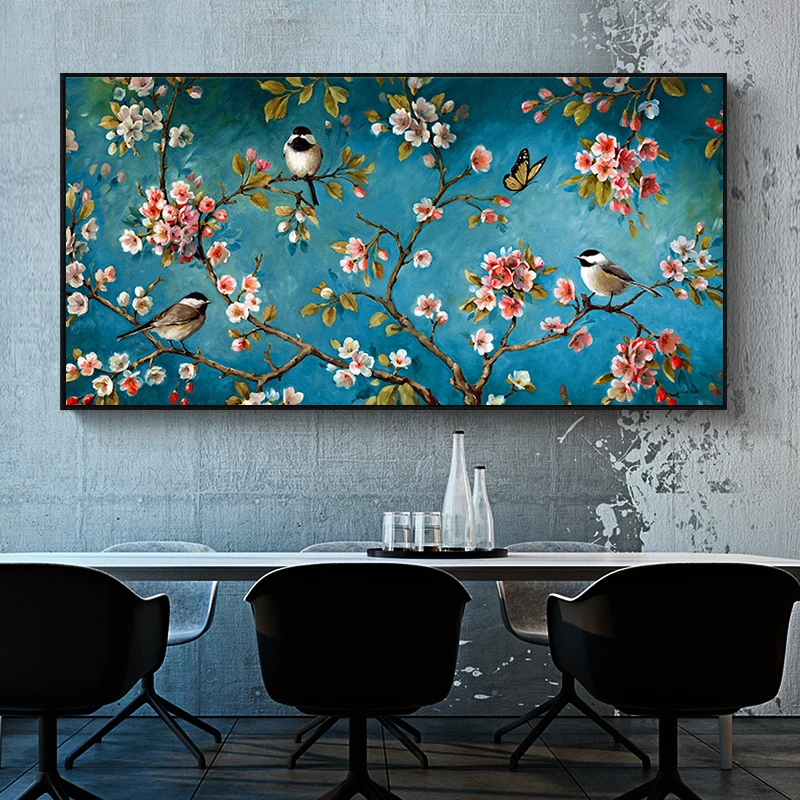 Постеры и принты в китайском стиле с птицами и цветами персика, кар...
