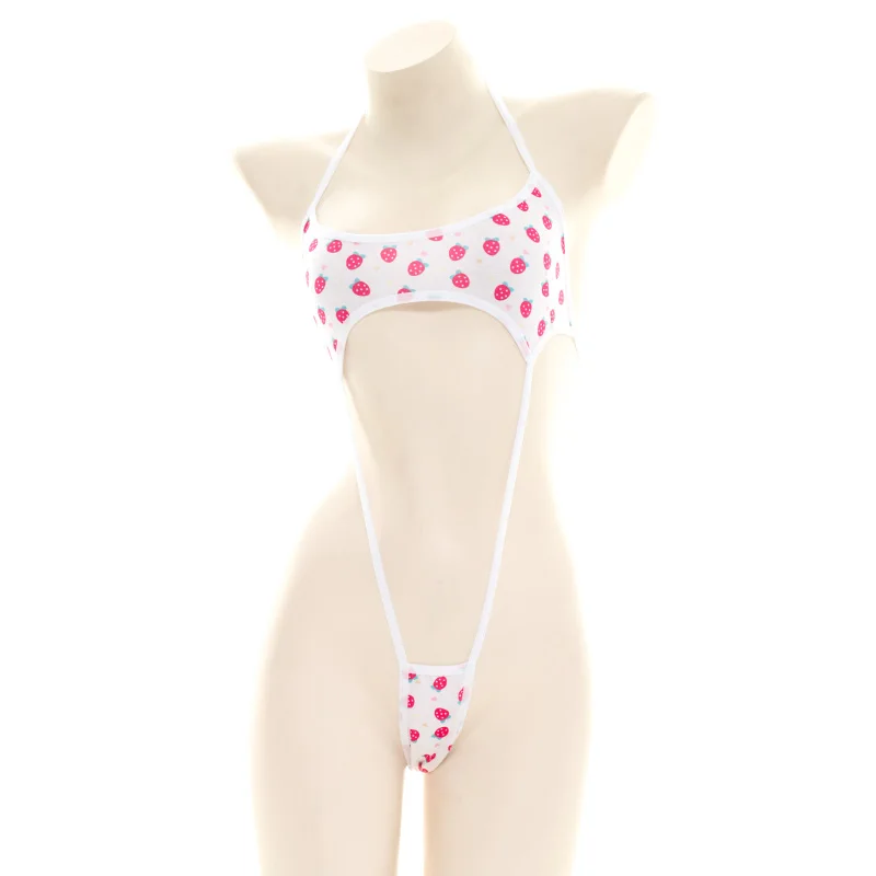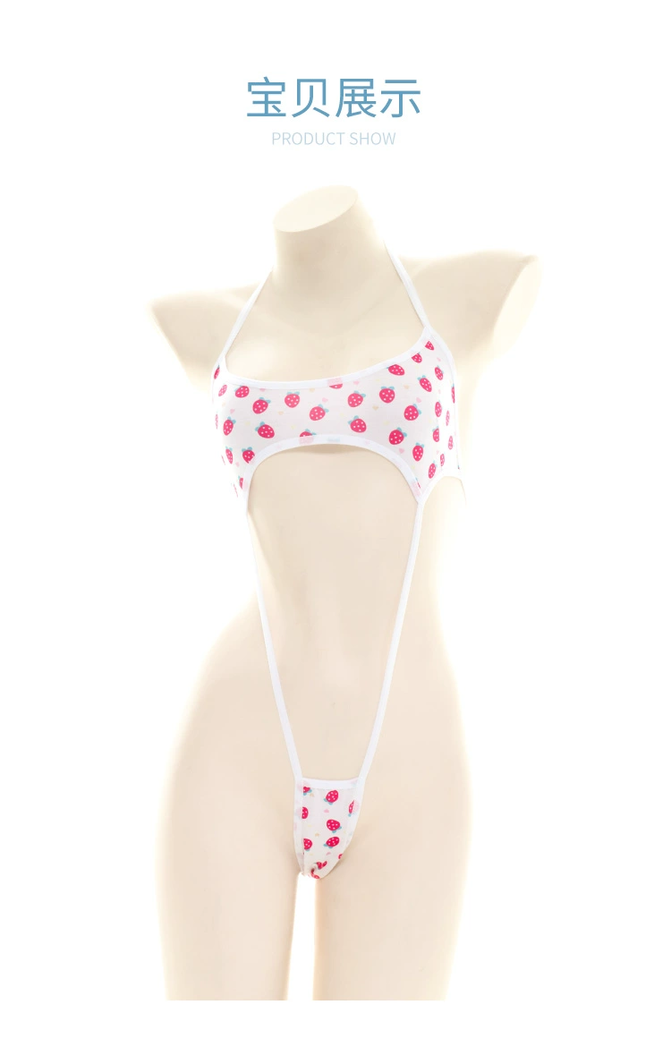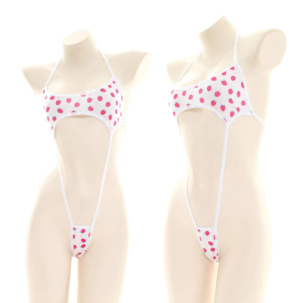 Женское милое нижнее белье с принтом клубники, соблазнительная пижама в японском стиле для девушек-подростков, слитный пижамный комплект для косплея
