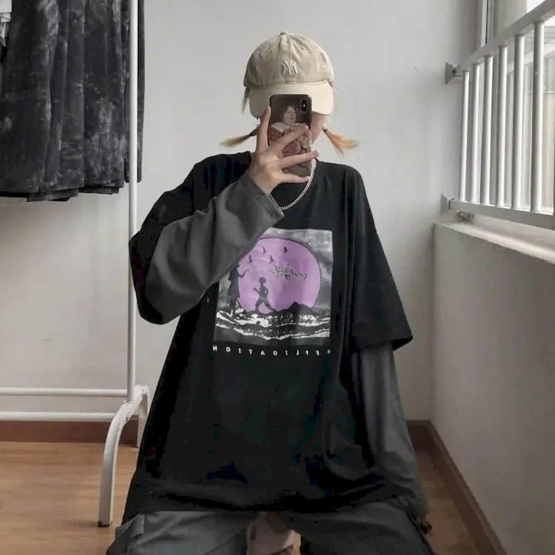Футболка женская с длинным рукавом, Ранняя осень, Студенческая свободная Двухслойная верхняя одежда в стиле бойфренд Харадзюку, Корейская версия