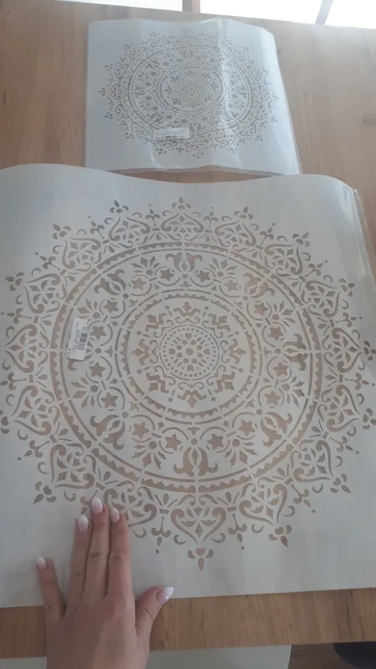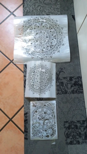 Продавец отправил трафарет,скрученным в трубочку,и после 2 недель пути до России,трафарет полностью потерял свою форму((((((((((((((((((( так что нет у меня теперь этого трафарета,а есть непонятной формы пластик