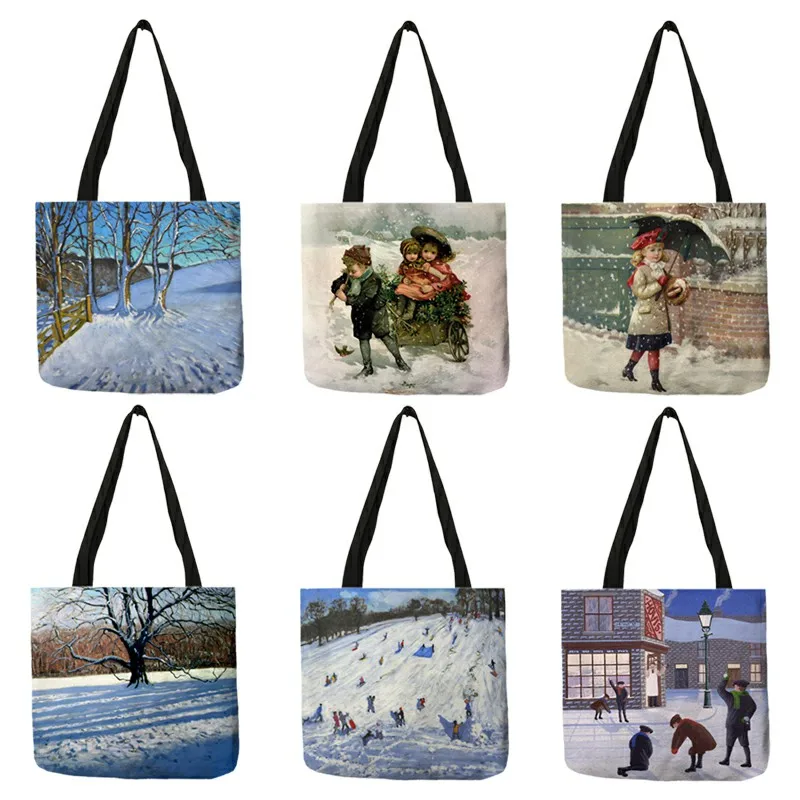Рождественские Сумки с принтом Snowscape для женщин 2020 Повседневная сумка через плечо новый подарок многофункциональные сумки для покупок многоразовые B13141