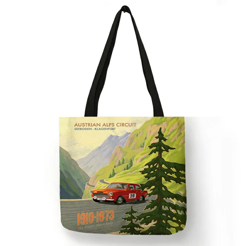 Сумки-шопперы для женщин в японском стиле ретро с принтом автомобиля многоразовая сумка через плечо для покупок для продуктов большой вместимости B13146
