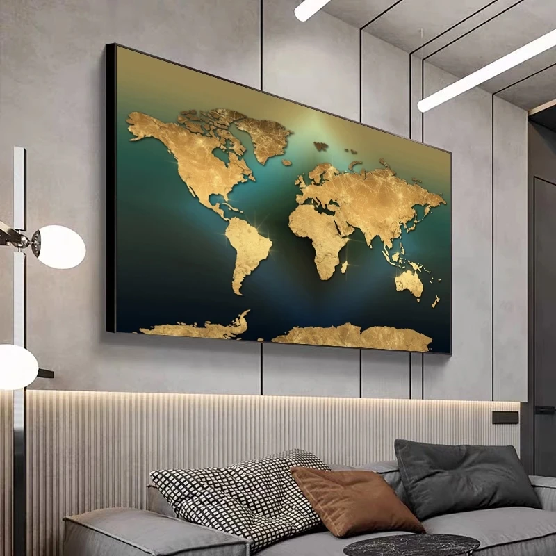 Современная Карта мира, Картина на холсте, Скандинавская Золотая зе...