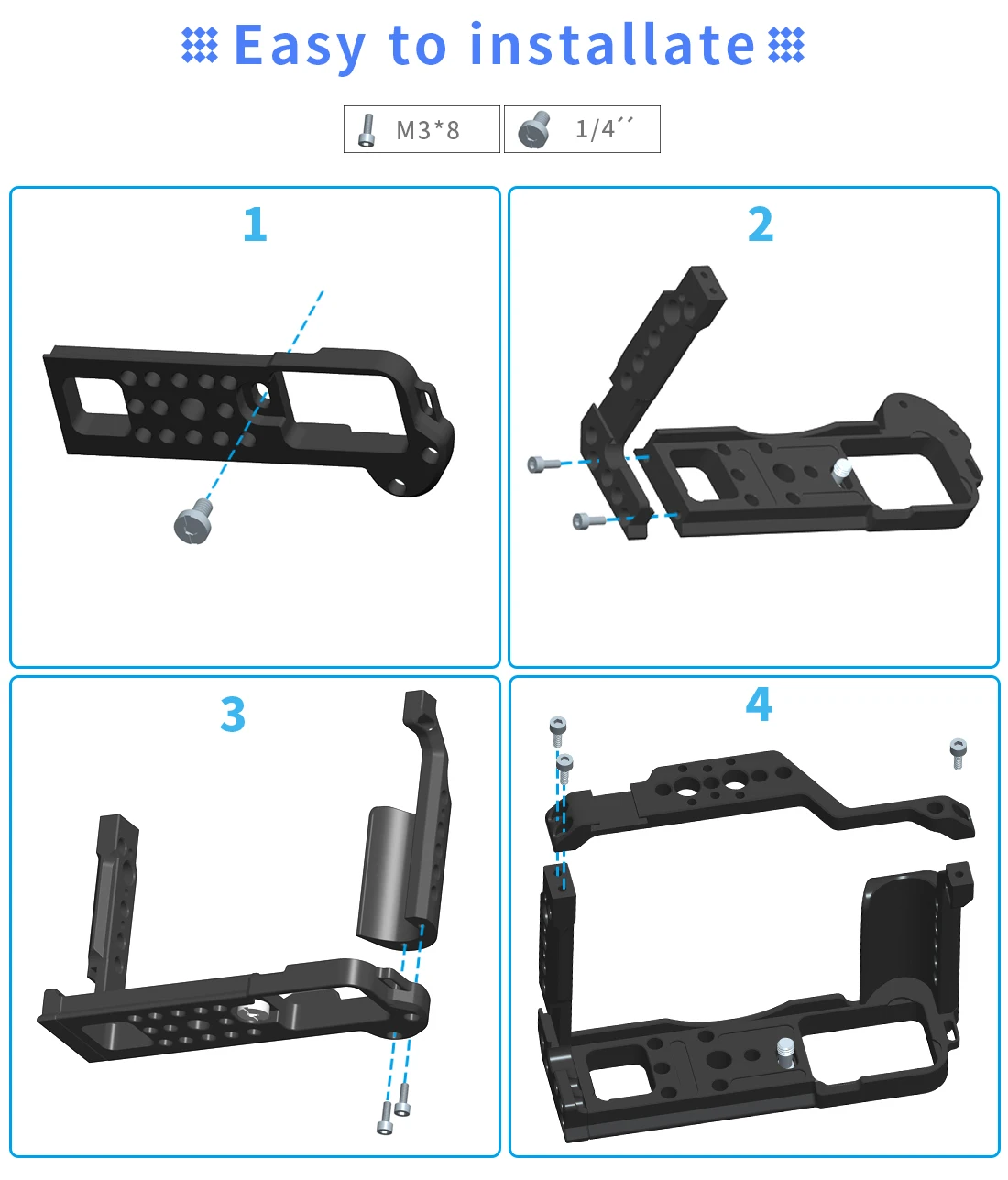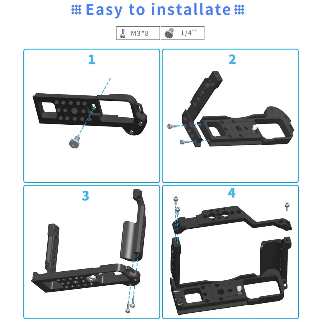Изготовлен из алюминиевого сплава, с винтом 1/4, подходит для всех клеток для камеры с отверстием для винта 1/4.