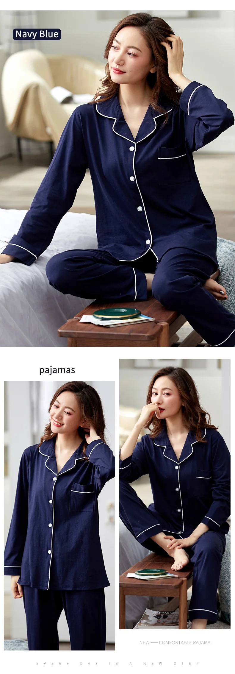 Пижама женская из 100% хлопка, с длинным рукавом, на пуговицах