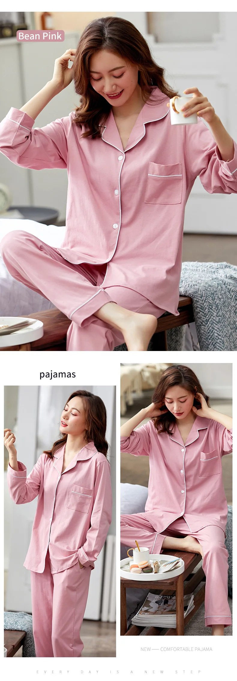 Осенние пижамы из 100% хлопка, Женские однотонные красные пижамы Do...