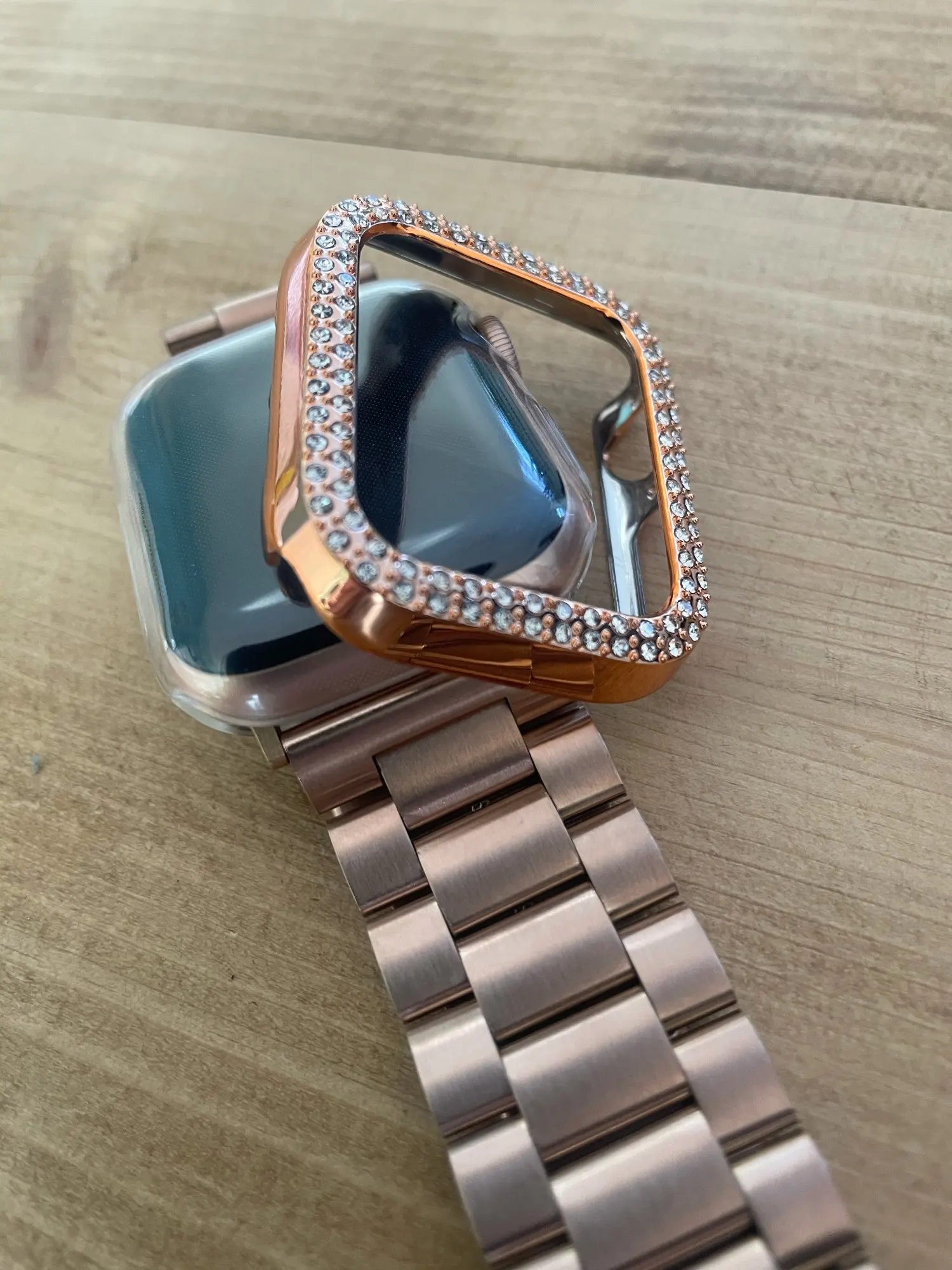 Двухрядный Алмазный чехол для часов apple watch, чехол 38 мм, 42 мм, 40 мм, 44 мм, ремешок для ПК, защитная крышка для экрана iWatch Series 5 4 3 2Хорошая совместимость:Этот чехол для часов совместим с Apple watch (38 мм 42 мм для серии 3/2/1) и (40 мм для серии 4 44 мм). ВыберитеМодель по вашему желанию. Примечание: Apple Watch или ремешок в комплект не входят.Шикарный роскошный дизайн:Премиум Искрящийся на украшения с камнями и стразами устанавливается на полный корпус циферблата часов, клей делает Стразы сплошными, и он не оторвется легко.Полная защита:Металлический гальванический поликарбонатный материал, Хорошо отполированная твердая оправа, устойчива к ежедневному износу. Чехол для часов покрывает все стороны часов и плотно держится, полностью защищает ваши часы apple от царапин, ударов и ударов, обеспечивает внешнюю защиту.Уникальный дизайн:Все функции (кнопки, датчики, функции часов, функция зарядки) доступны без снятия ремешкаКаждый чехол часов прошел проверку качества перед продажей (часы не входят посылка, стоит купить.