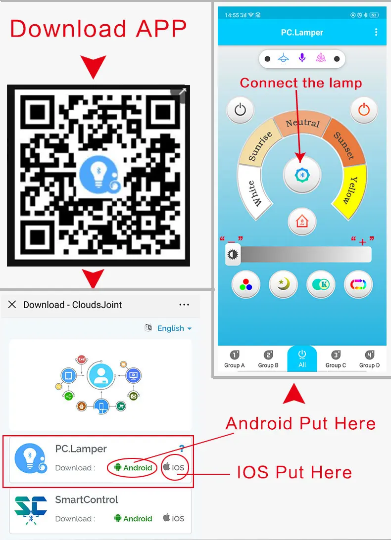 5. Диммируемая с пультом управления/приложением с пультом дистанционного управления: включает Пульт дистанционного управления, теплый белый, холодный белый и естественный светильник в одной лампе