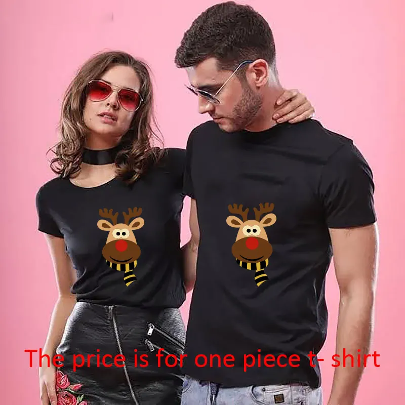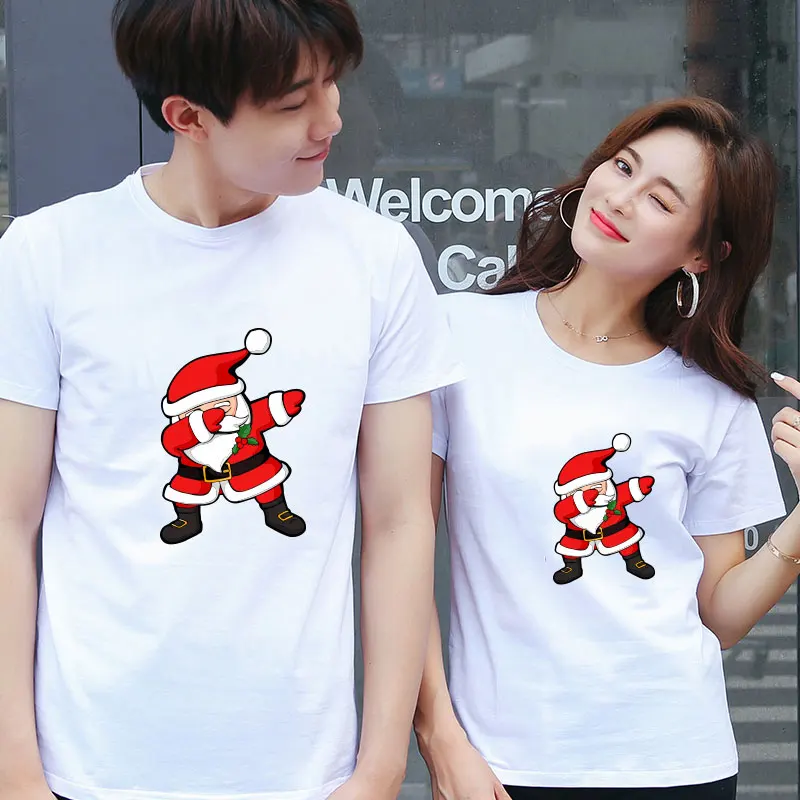 Рождественская одежда с принтом для пары, футболка для пары, рождественский подарок, повседневные хлопковые футболки с коротким рукавом, брендовый Свободный Топ для пары