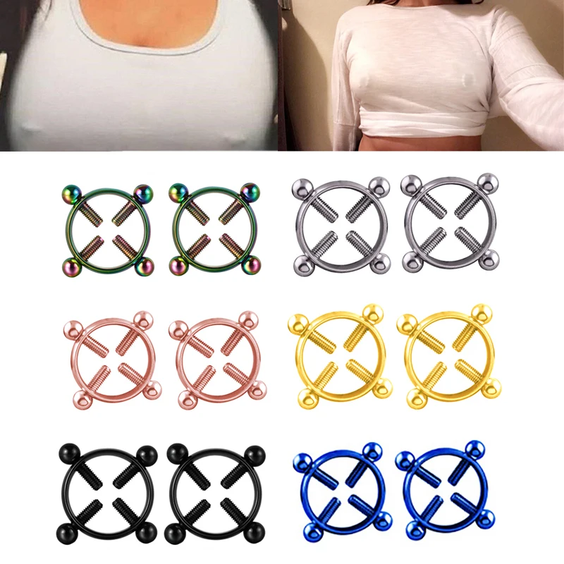 2 шт. кольцо из нержавеющей стали для сосков Поддельные не пирсинг груди ГВОЗДЬ ВИНТ щит зажим для взрослых игра для женщин сексуальное ювелирное изделие для тела подарок