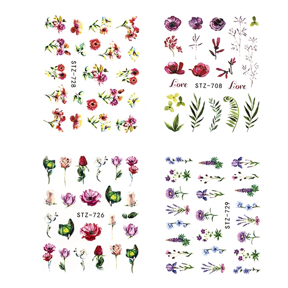 Наклейки для ногтей, с цветами и листьями, 26 дизайнов, Весенняя серия