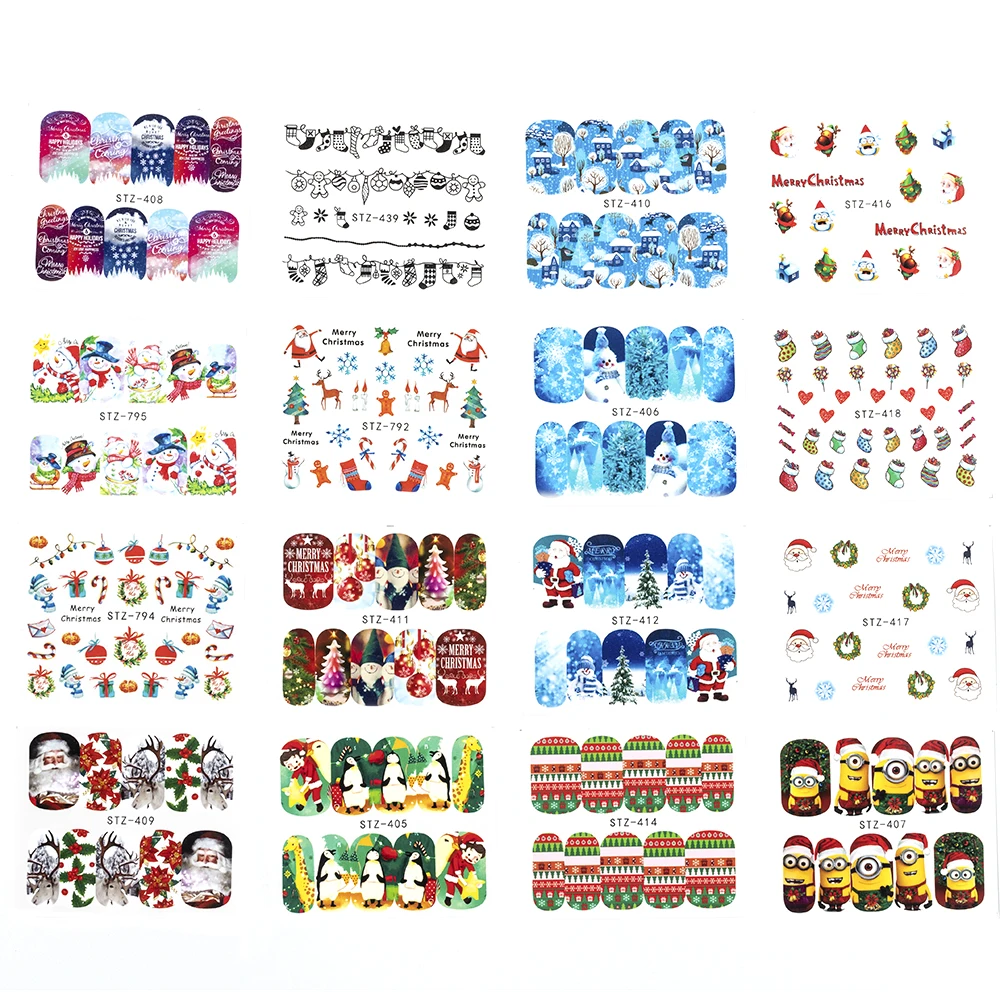 Золотые наклейки для ногтей серебряный с оленем в рождественском ст...