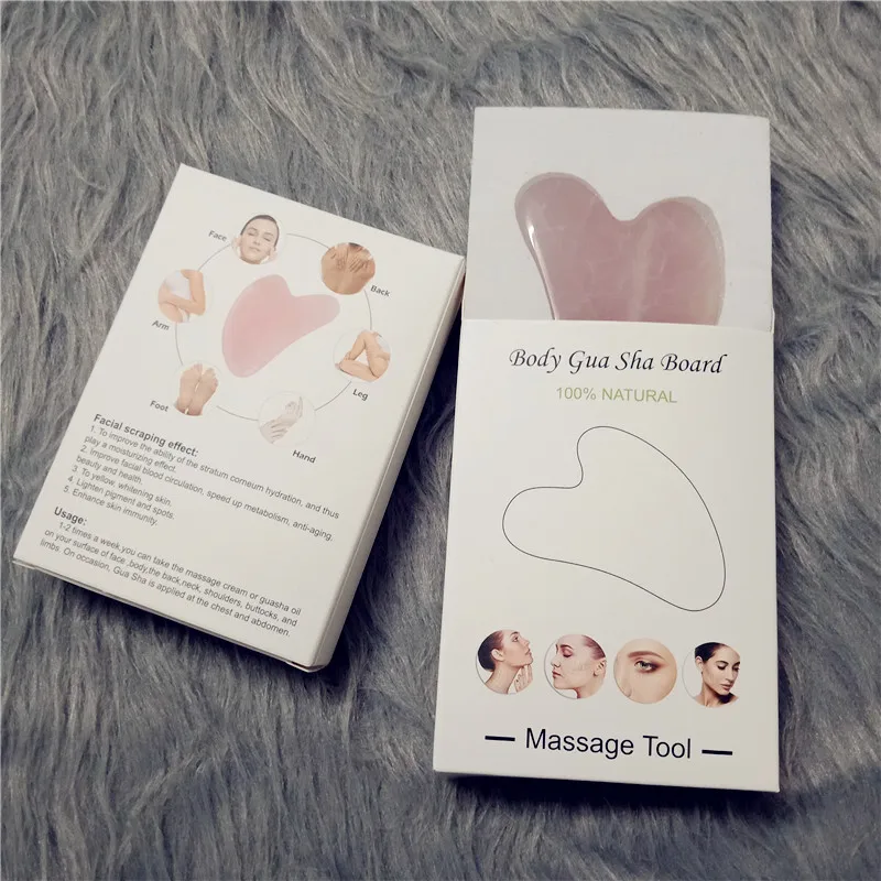 Скребок Для Массажа Гуаша, Нефритовый камень розового кварца для лица и шеи, инструмент для удаления морщин
