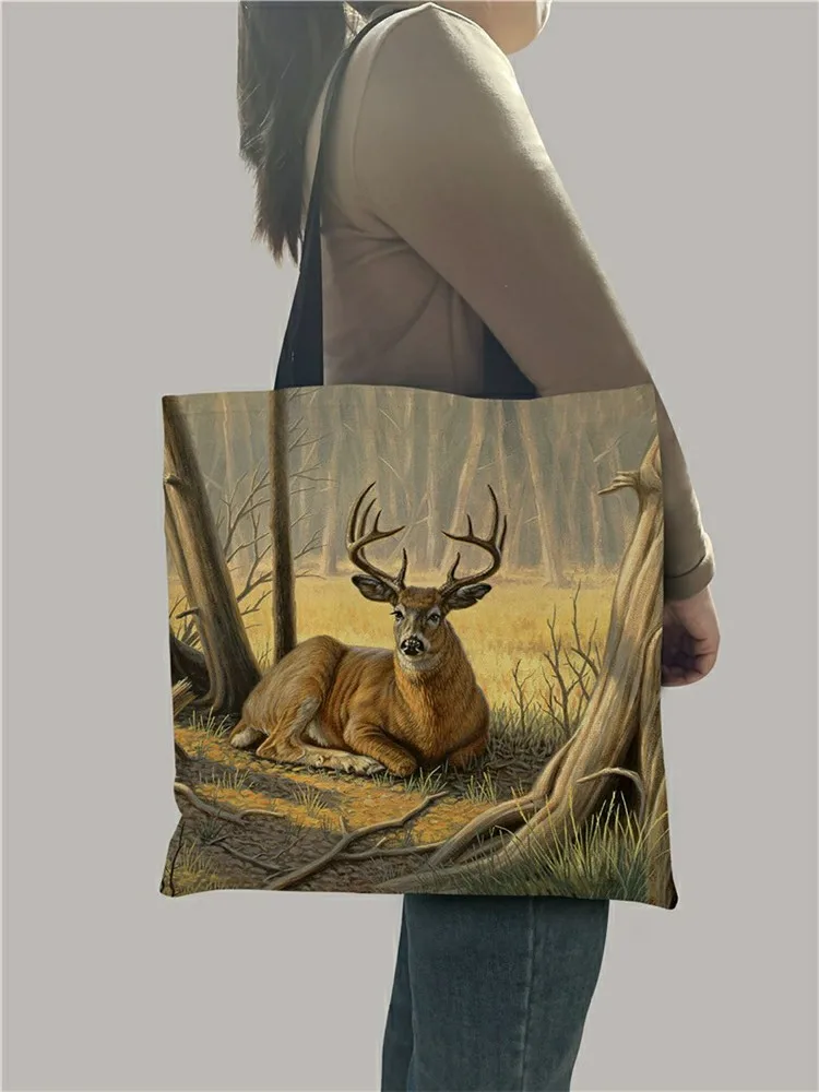 Сумка-тоут с акварельным рисунком животных, Повседневная льняная пр...