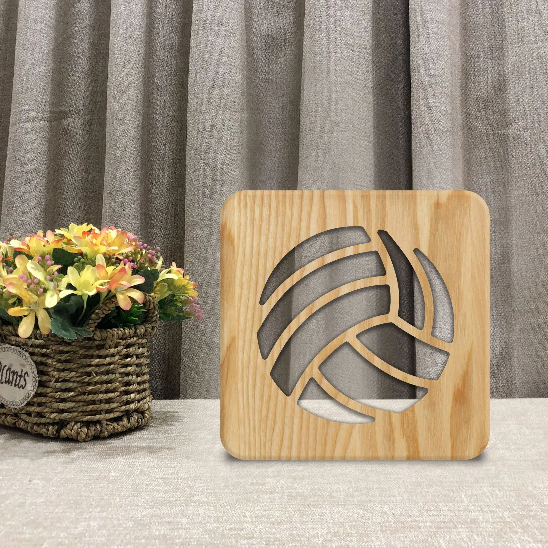 Волейбольная 3D деревянная лампа, светодиодный ночсветильник с Usb, полые настольные лампы с резьбой для дома, декор для спальни, креативные подарки