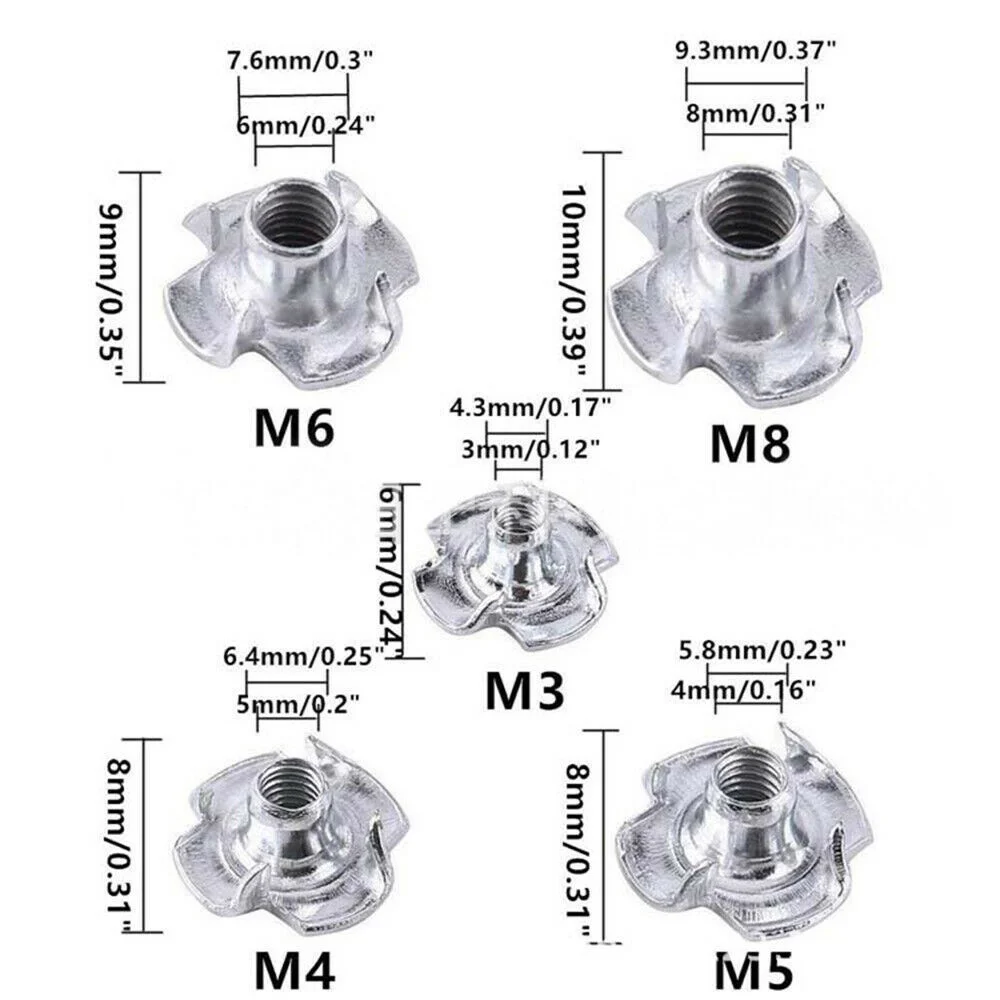 120 шт. Т-гайка M3 M4 M5 M6 M8, оцинкованная гайка с четырьмя когтя...
