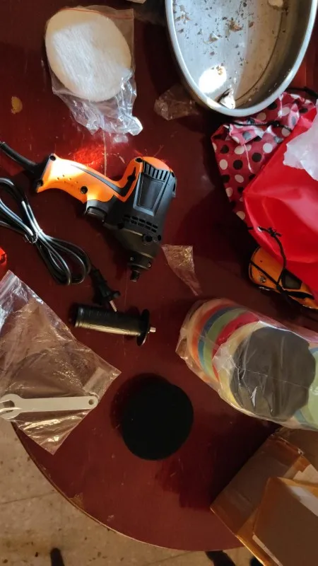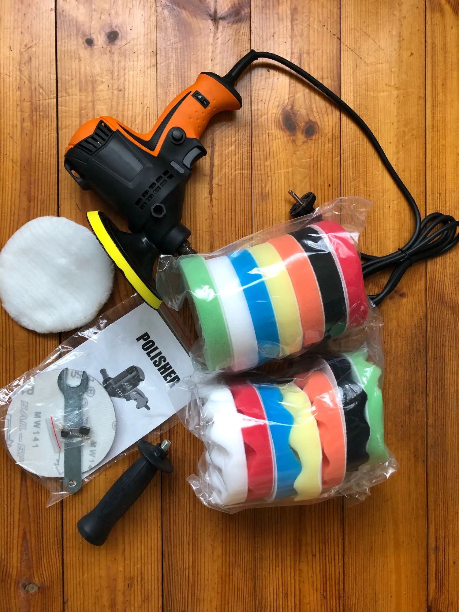 Очень хорошая, хорошая Рабочая машина с большим количеством полировальных подушек. Также некоторые шлифовальные бумаги и запасные угольные щетки. Очень быстрая доставка в течение трех дней от CZ. Очень доволен!